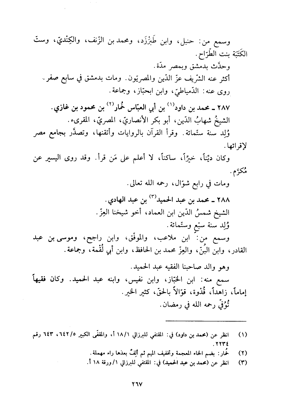 [1] انظر عن (محمد بن داود) في: المقتفي للبرزالي 1/ 18 أ، والمقفّى الكبير 5/ 642، 643 رقم 2234.