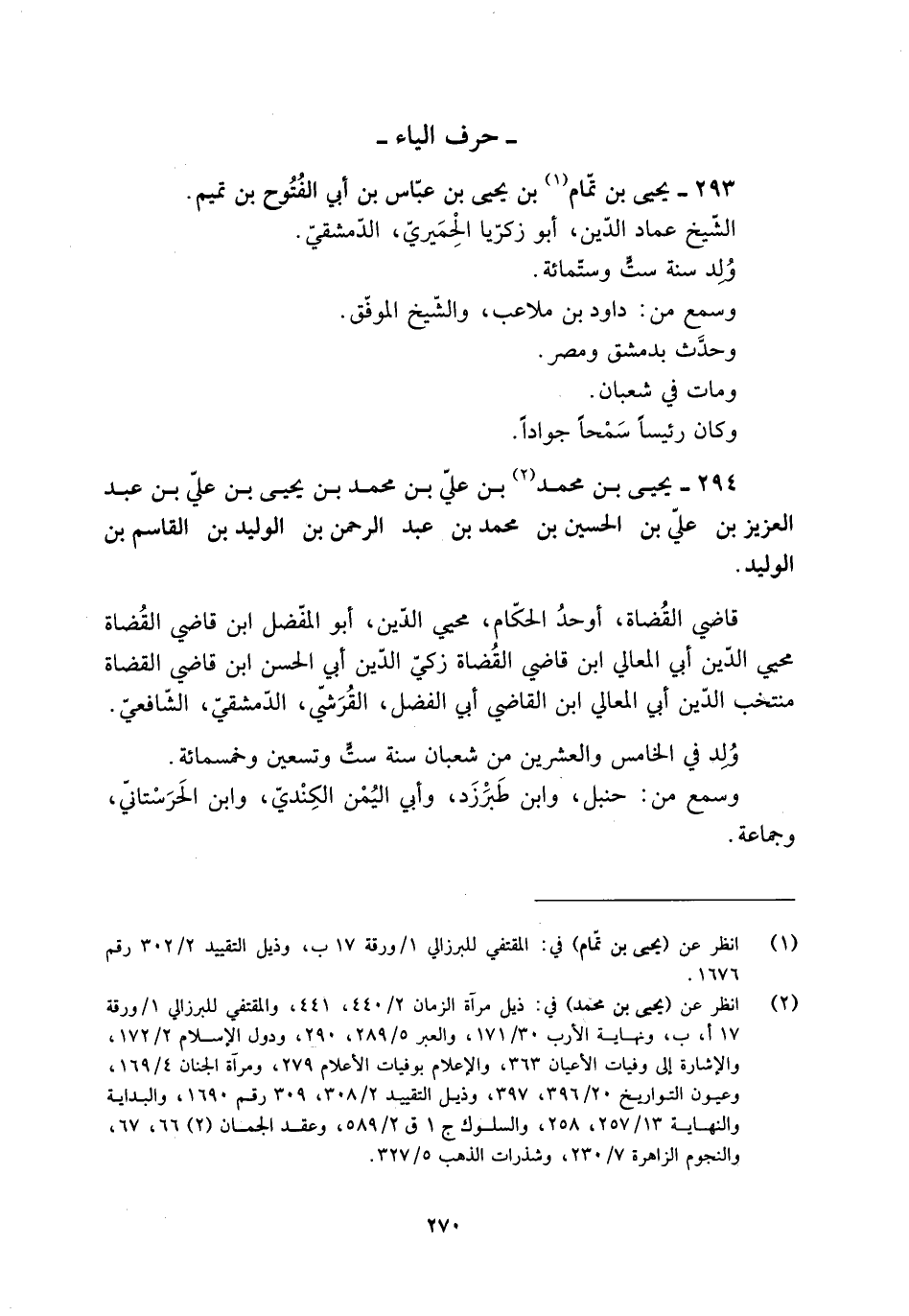 293- يحيى بن تمّام [1] بن يحيى بن عبّاس بن أبي الفُتُوح بن تميم.