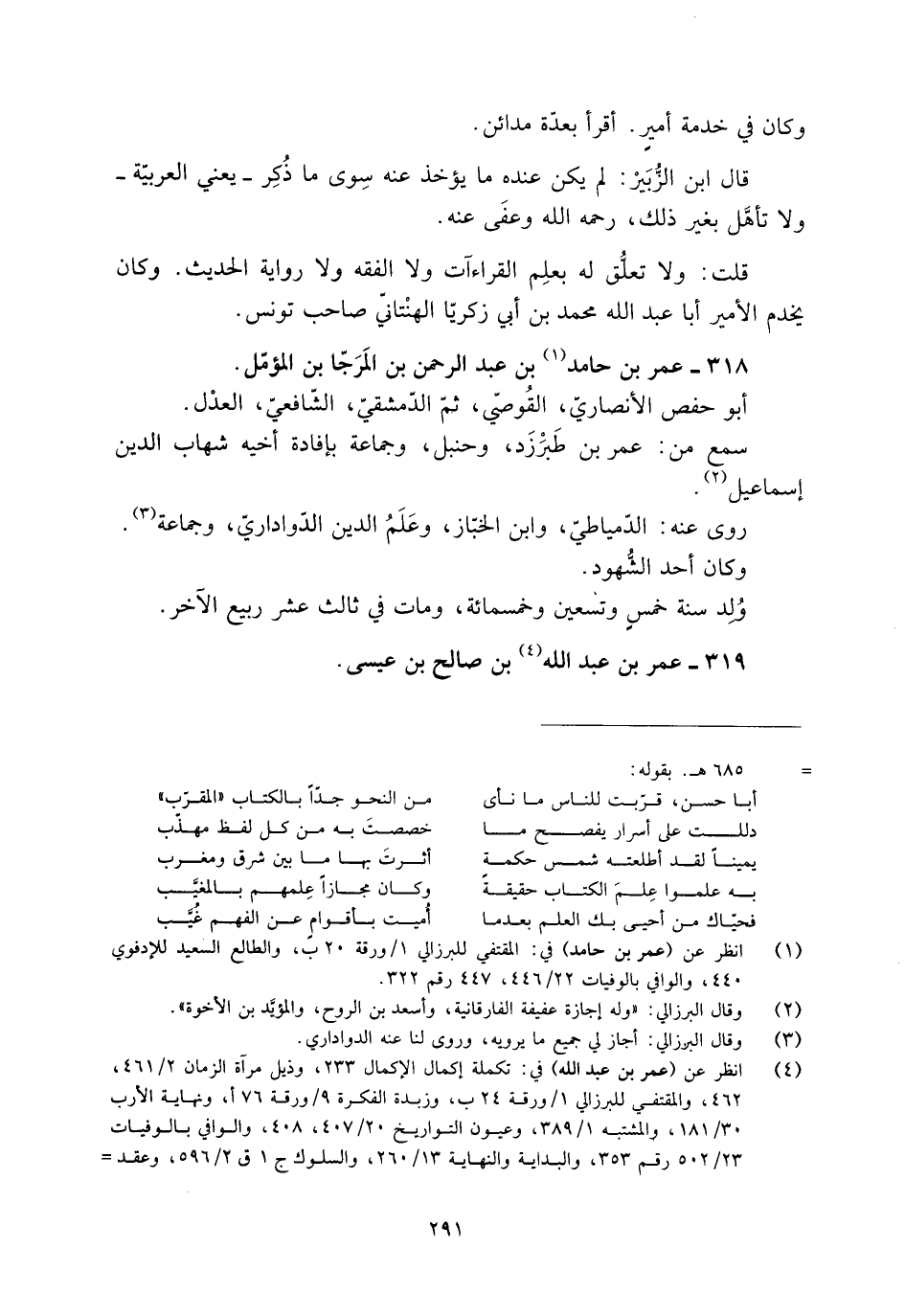 318- عمر بن حامد [1] بن عبد الرحمن بن المرجّى بن المؤمّل.
