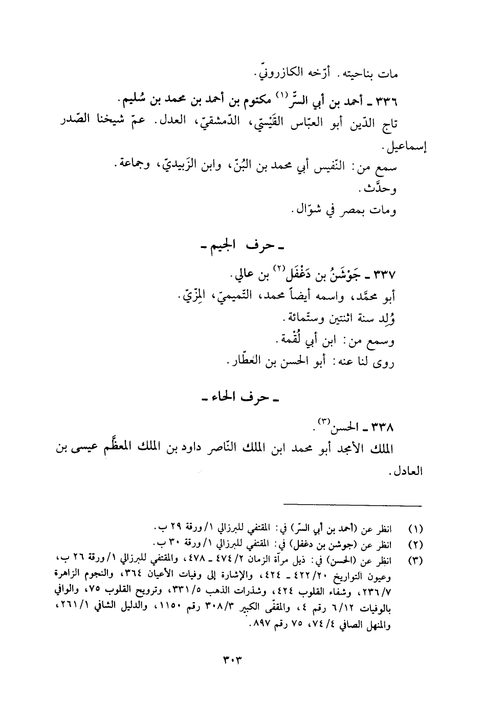 [1] انظر عن (أحمد بن أبي السرّ) في: المقتفي للبرزالي 1/ ورقة 29 ب.