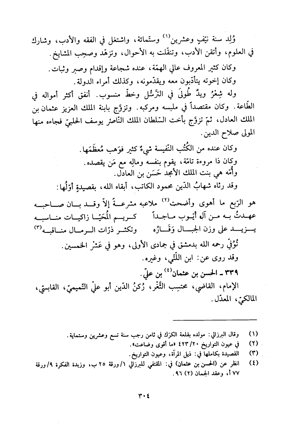 [4] انظر عن (الحسن بن عثمان) في: المقتفي للبرزالي 1/ ورقة 25 ب، وزبدة الفكرة 9/ ورقة 77 أ، وعقد الجمان (2) 96.