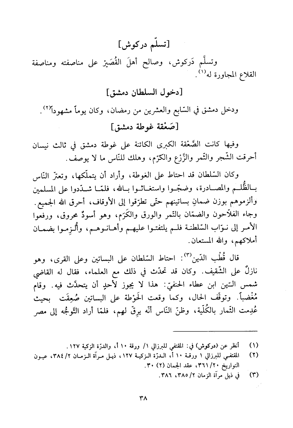 [1] انظر عن (دركوش) في: المقتفي للبرزالي 1/ ورقة 10 أ، والدرّة الزكية 127.