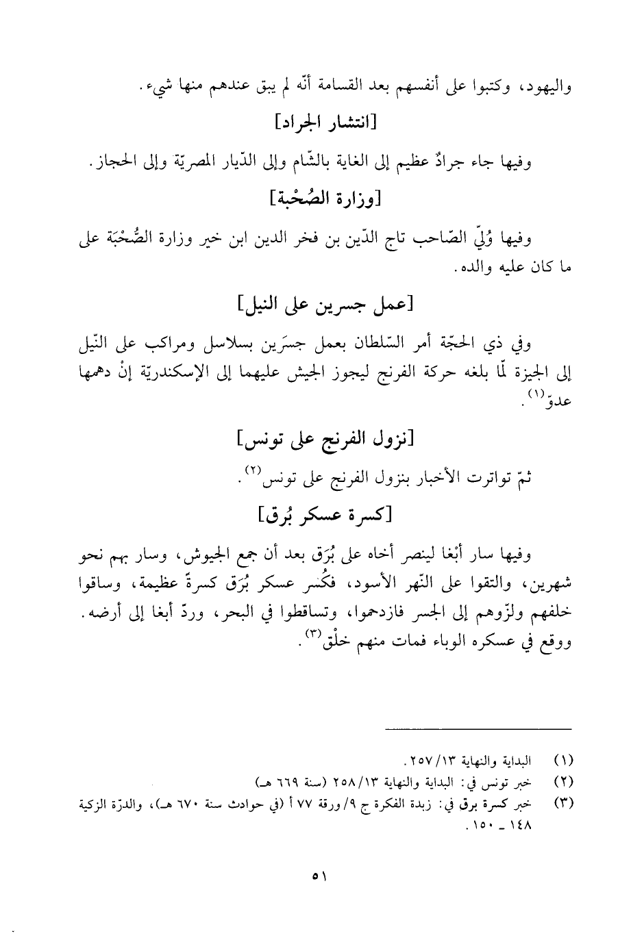 [3] خبر كسرة برق في: زبدة الفكرة ج 9/ ورقة 77 أ (في حوادث سنة 670 هـ) ، والدرّة الزكية 148- 150.