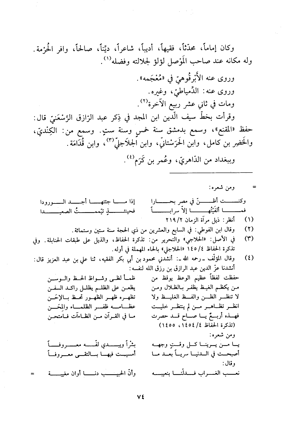 [3] في الأصل: «الحلاجي» والتحرير من: تذكرة الحفاظ، والذيل على طبقات الحنابلة. وفي تذكرة الحفاظ 4/ 154 «الحلاجلي» بالحاء المهملة في أوله.