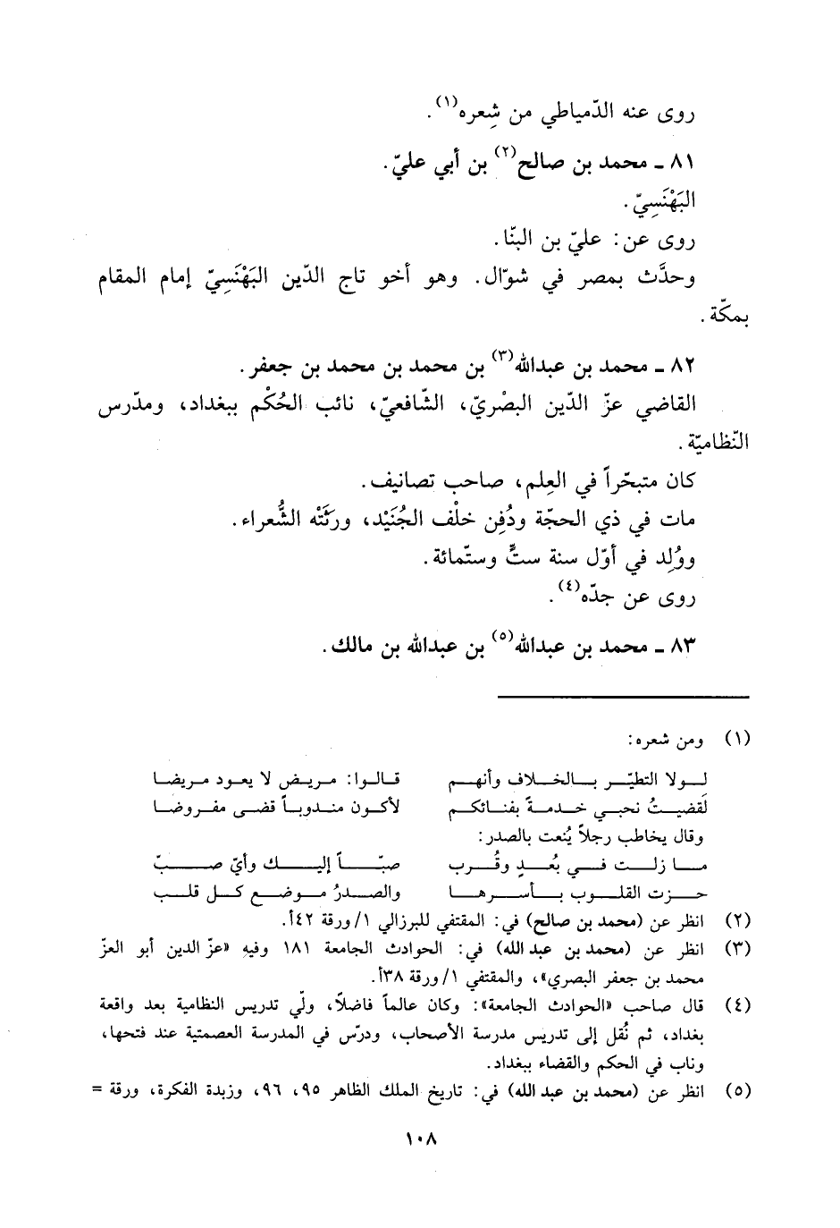 [3] انظر عن (محمد بن عبد الله) في: الحوادث الجامعة 181 وفيه «عزّ الدين أبو العزّ محمد بن جعفر البصري» ، والمقتفي 1/ ورقة 38 أ.