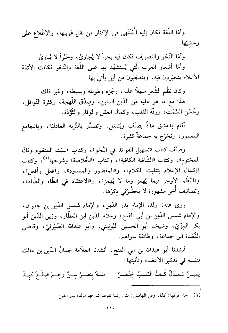 [1] جاء فوقها: كذا. وفي الهامش: ث. إنما نعرف شرحها لولده بدر الدين.