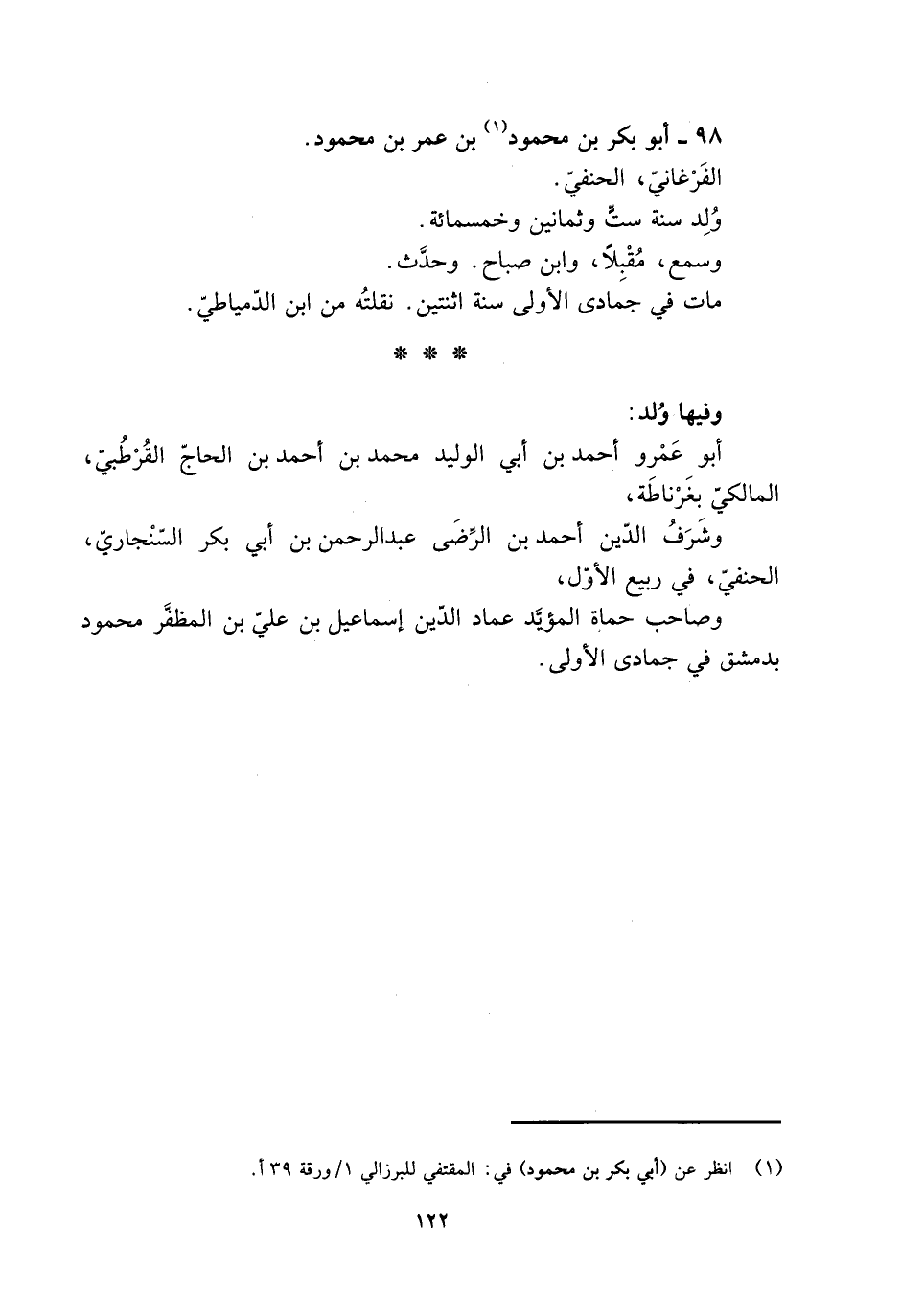 98- أبو بَكْر بْن محمود [1] بْن عُمَر بْن محمود.