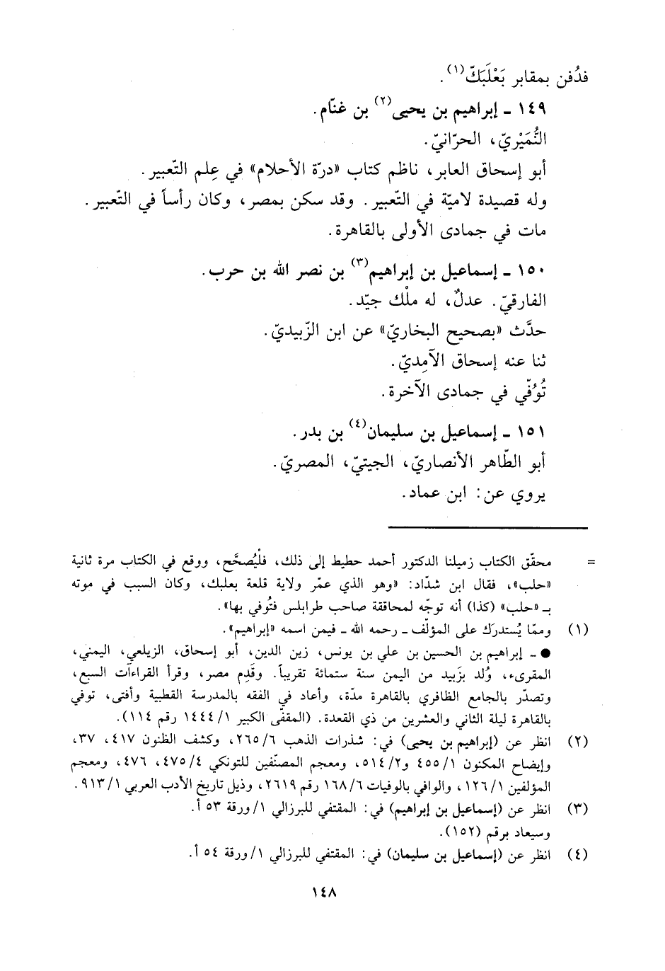 149- إِبْرَاهِيم بْن يحيى [2] بْن غنّام.