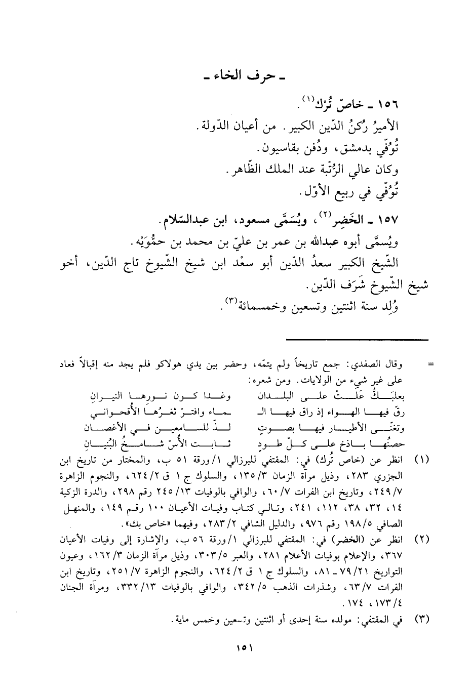 157- الخَضِر [2] ، ويُسَمَّى مَسْعُود، ابن عَبْد السّلام.