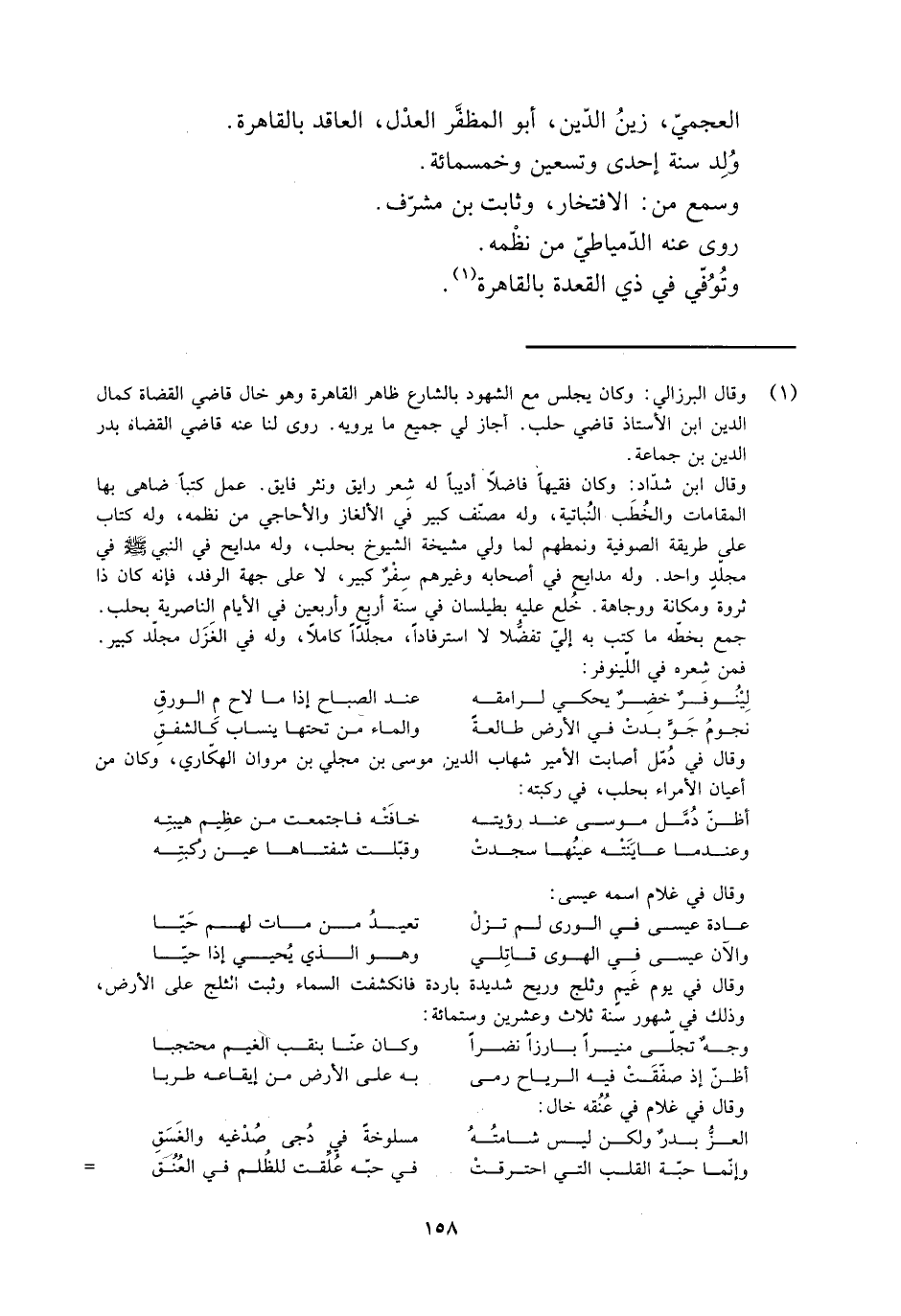 [1] وقال البرزالي: وكان يجلس مع الشهود بالشارع ظاهر القاهرة وهو خال قاضي القضاة كمال الدين ابن الأستاذ قاضي حلب. أجاز لي جميع ما يرويه. روى لنا عنه قاضي القضاة بدر الدين بن جماعة.