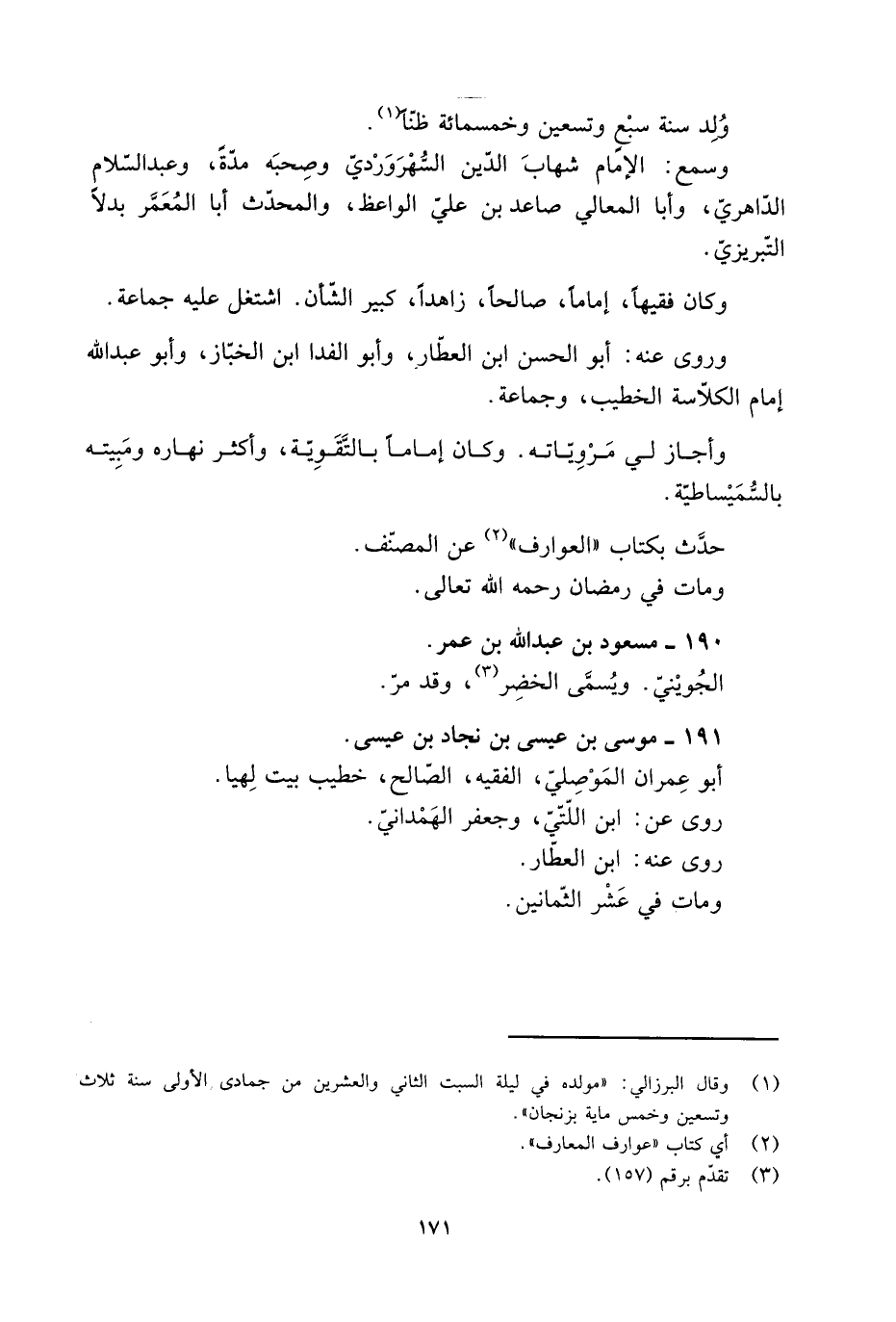 حدَّث بكتاب «العوارف» [2] عن المصنّف.