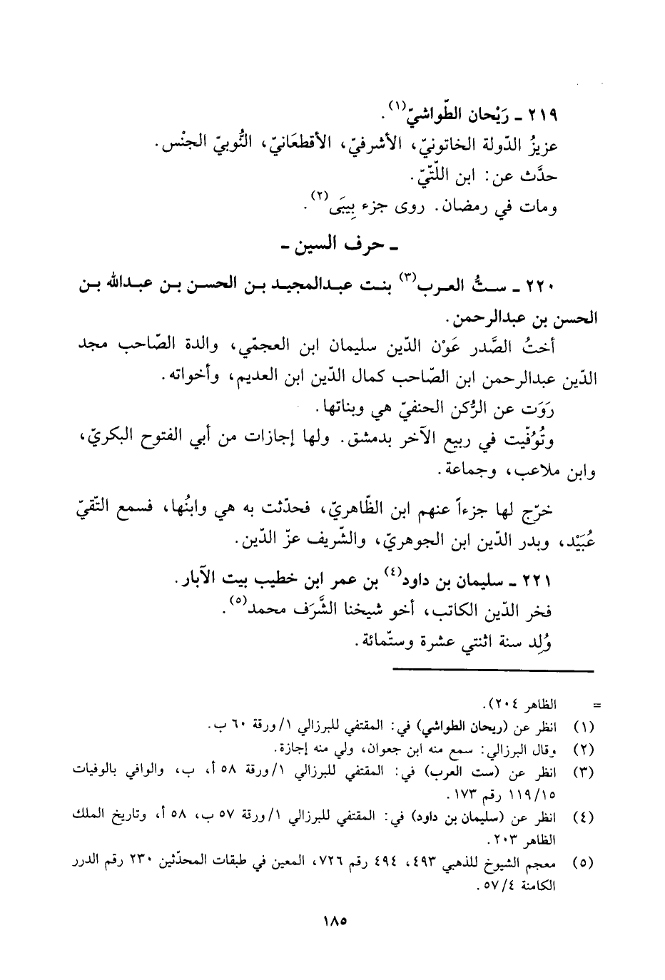 [4] انظر عن (سليمان بن داود) في: المقتفي للبرزالي 1/ ورقة 57 ب، 58 أ، وتاريخ الملك الظاهر 203.