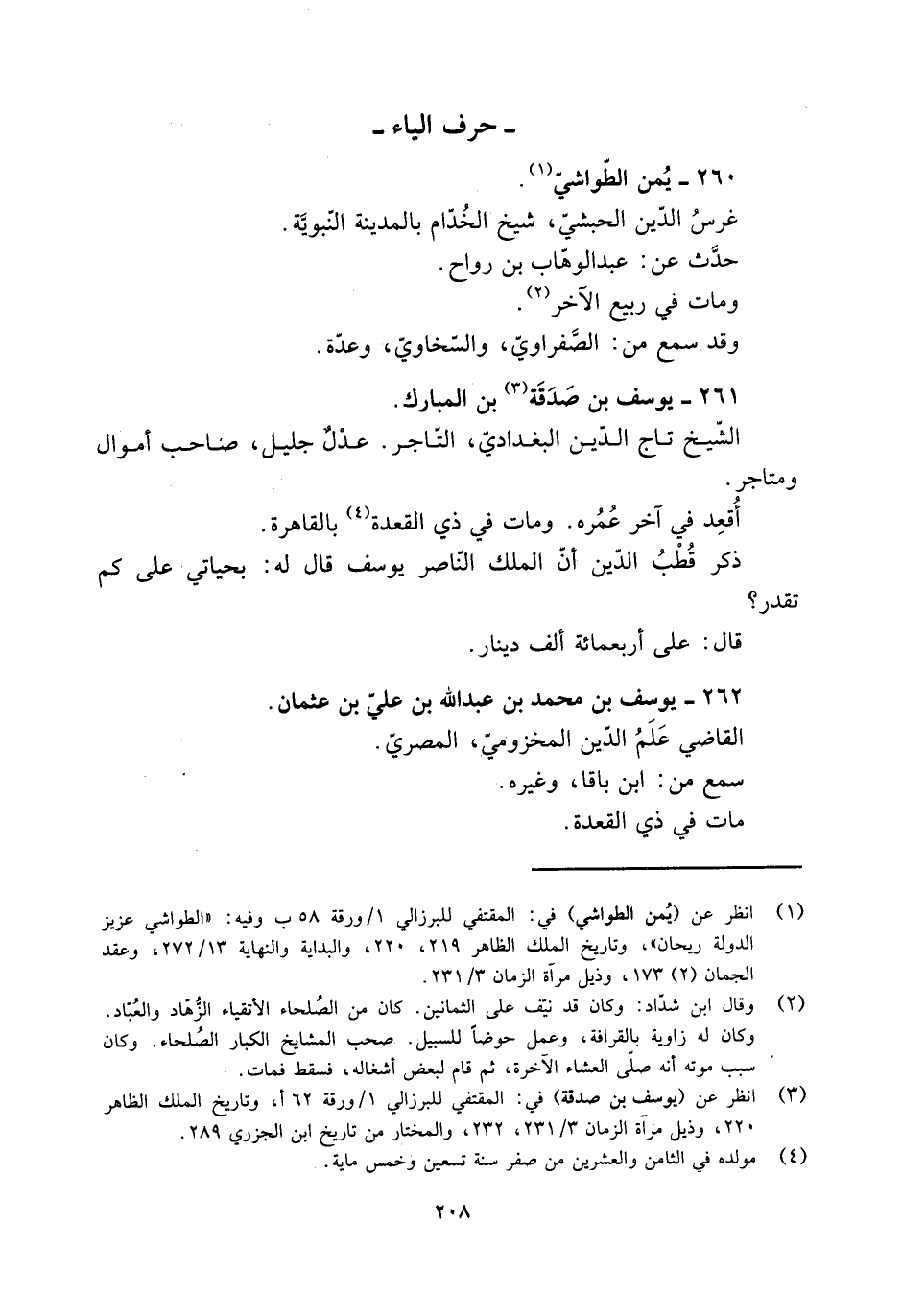 [3] انظر عن (يوسف بن صدقة) في: المقتفي للبرزالي 1/ ورقة 62 أ، وتاريخ الملك الظاهر 220، وذيل مرآة الزمان 3/ 231، 232، والمختار من تاريخ ابن الجزري 289.
