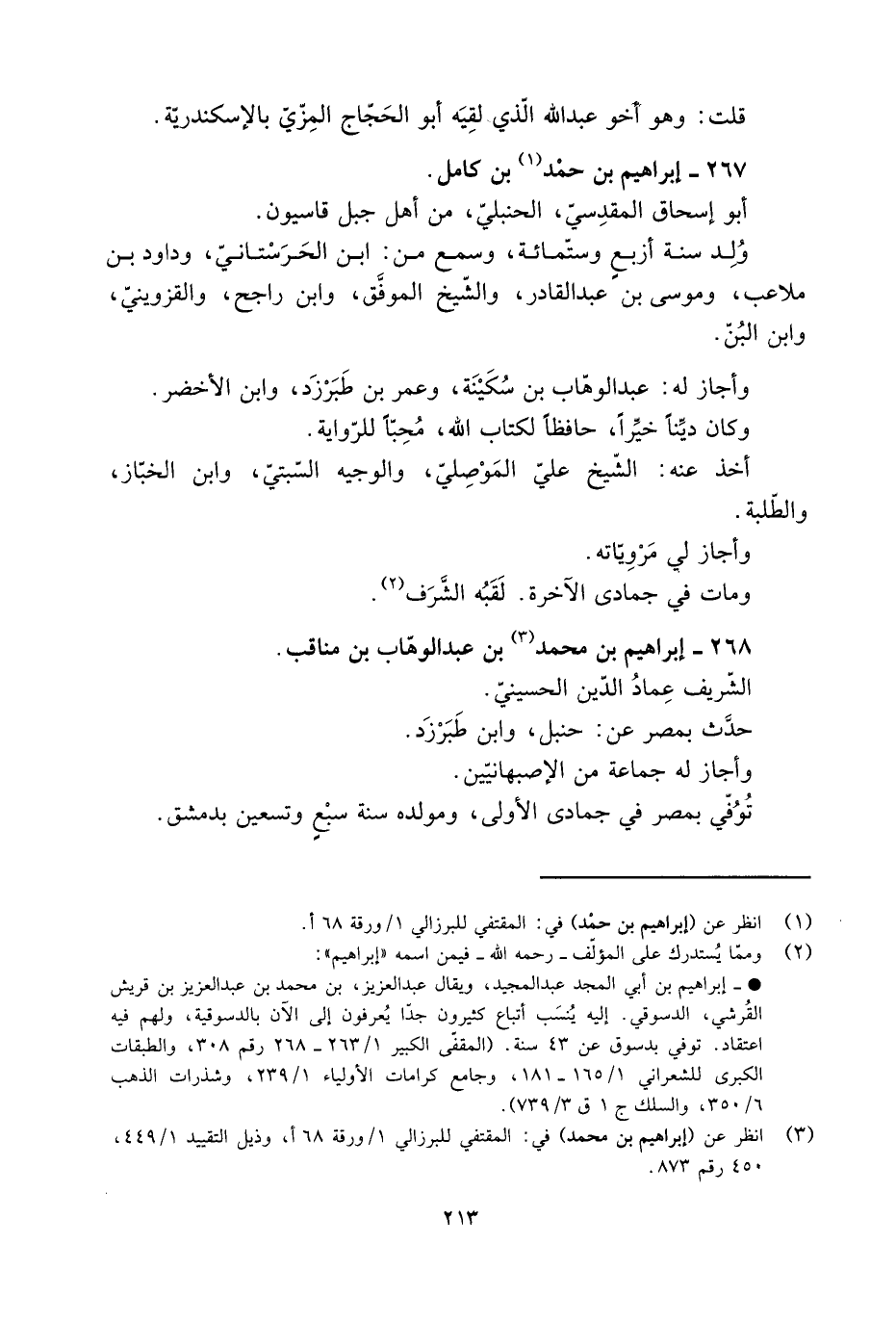[1] انظر عن (إبراهيم بن حمد) في: المقتفي للبرزالي 1/ ورقة 68 أ.