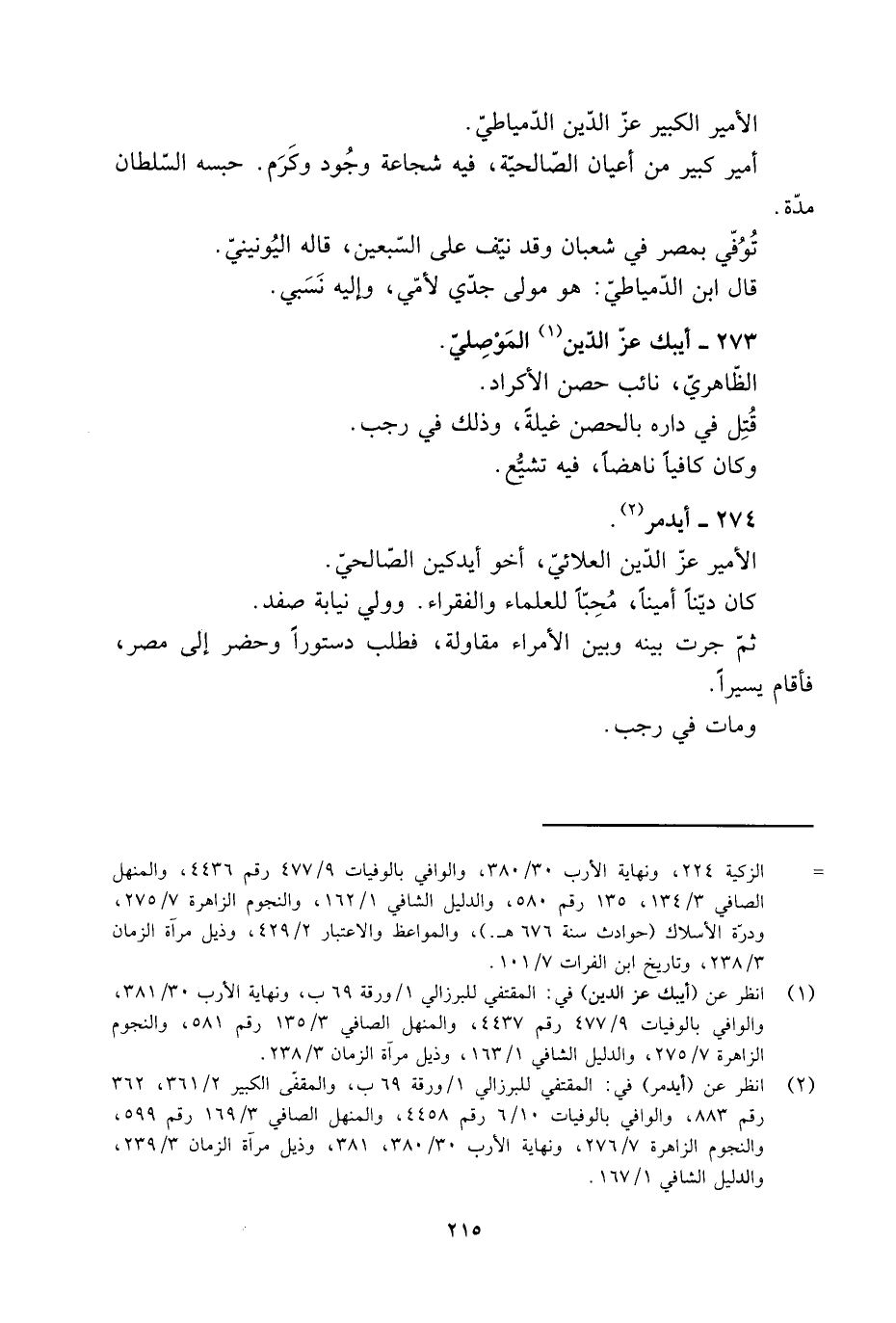 [2] انظر عن (أيدمر) في: المقتفي للبرزالي 1/ ورقة 69 ب، والمقفّى الكبير 2/ 361، 362 رقم 883، والوافي بالوفيات 10/ 6 رقم 4458، والمنهل الصافي 3/ 169 رقم 599، والنجوم الزاهرة 7/ 276، ونهاية الأرب 30/ 380، 381، وذيل مرآة الزمان 3/ 239، والدليل الشافي 1/ 167.