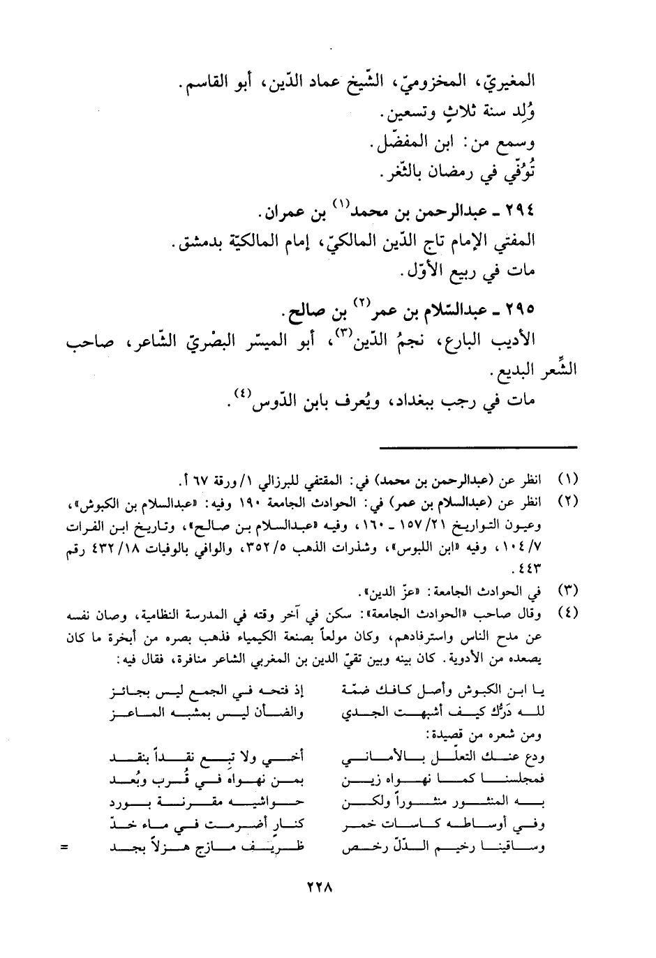 [2] انظر عن (عبد السلام بن عمر) في: الحوادث الجامعة 190 وفيه: «عبد السلام بن الكبوش» ، وعيون التواريخ 21/ 157- 160، وفيه «عبد السلام بن صالح» ، وتاريخ ابن الفرات 7/ 104، وفيه «ابن اللبوس» ، وشذرات الذهب 5/ 352، والوافي بالوفيات 18/ 432 رقم 443.