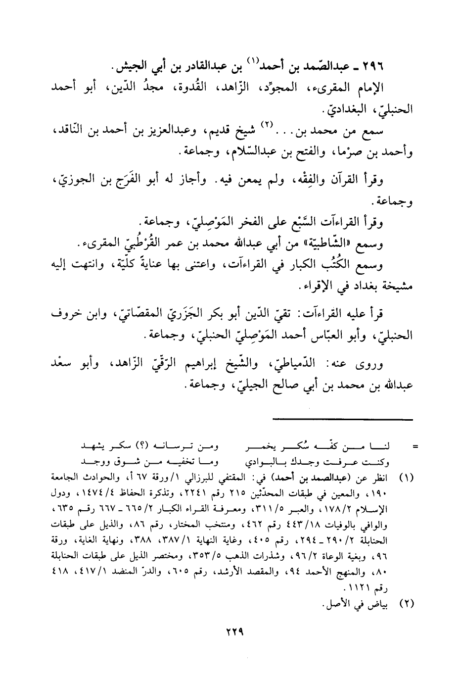 296- عَبْد الصّمد بْن أَحْمَد [1] بْن عَبْد القادر بْن أبي الجيش.