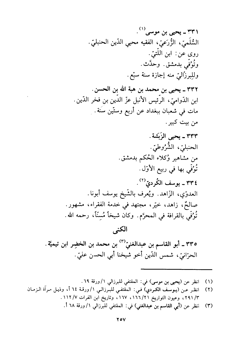 [1] انظر عن (يحيى بن موسى) في: المقتفي للبرزالي 1/ ورقة 69.