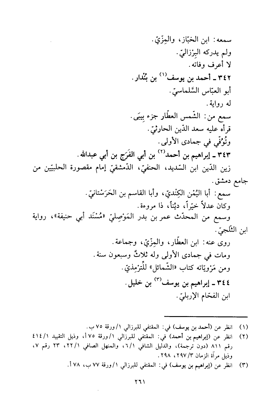 [3] انظر عن (إبراهيم بن يوسف) في: المقتفي للبرزالي 1/ ورقة 77 ب، 78 أ.