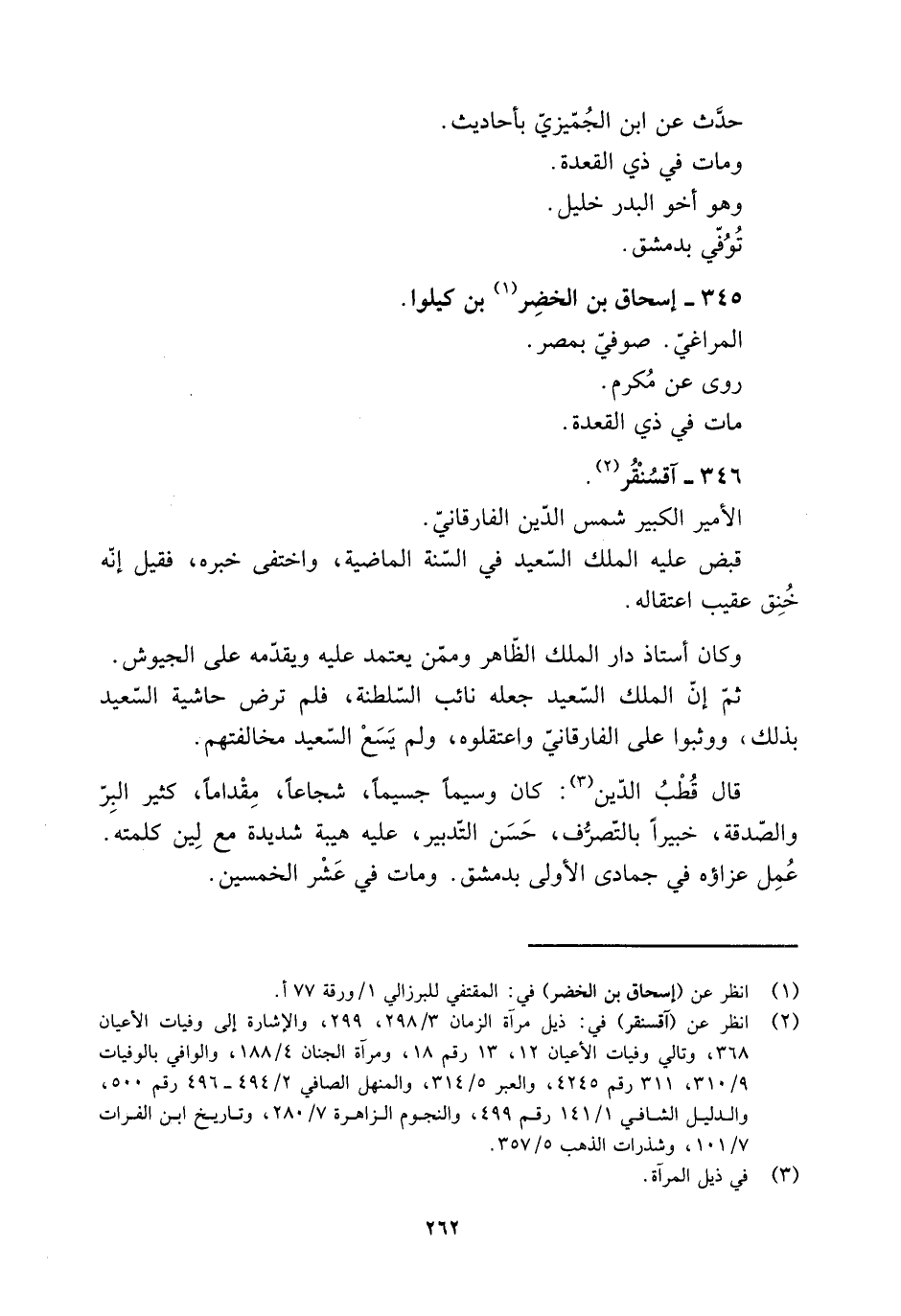 [2] انظر عن (آقسنقر) في: ذيل مرآة الزمان 3/ 298، 299، والإشارة إلى وفيات الأعيان 368، وتالي وفيات الأعيان 12، 13 رقم 18، ومرآة الجنان 4/ 188، والوافي بالوفيات 9/ 310، 311 رقم 4245، والعبر 5/ 314، والمنهل الصافي 2/ 494- 496 رقم 500، والدليل الشافي 1/ 141 رقم 499، والنجوم الزاهرة 7/ 280، وتاريخ ابن الفرات 7/ 101، وشذرات الذهب 5/ 357.
