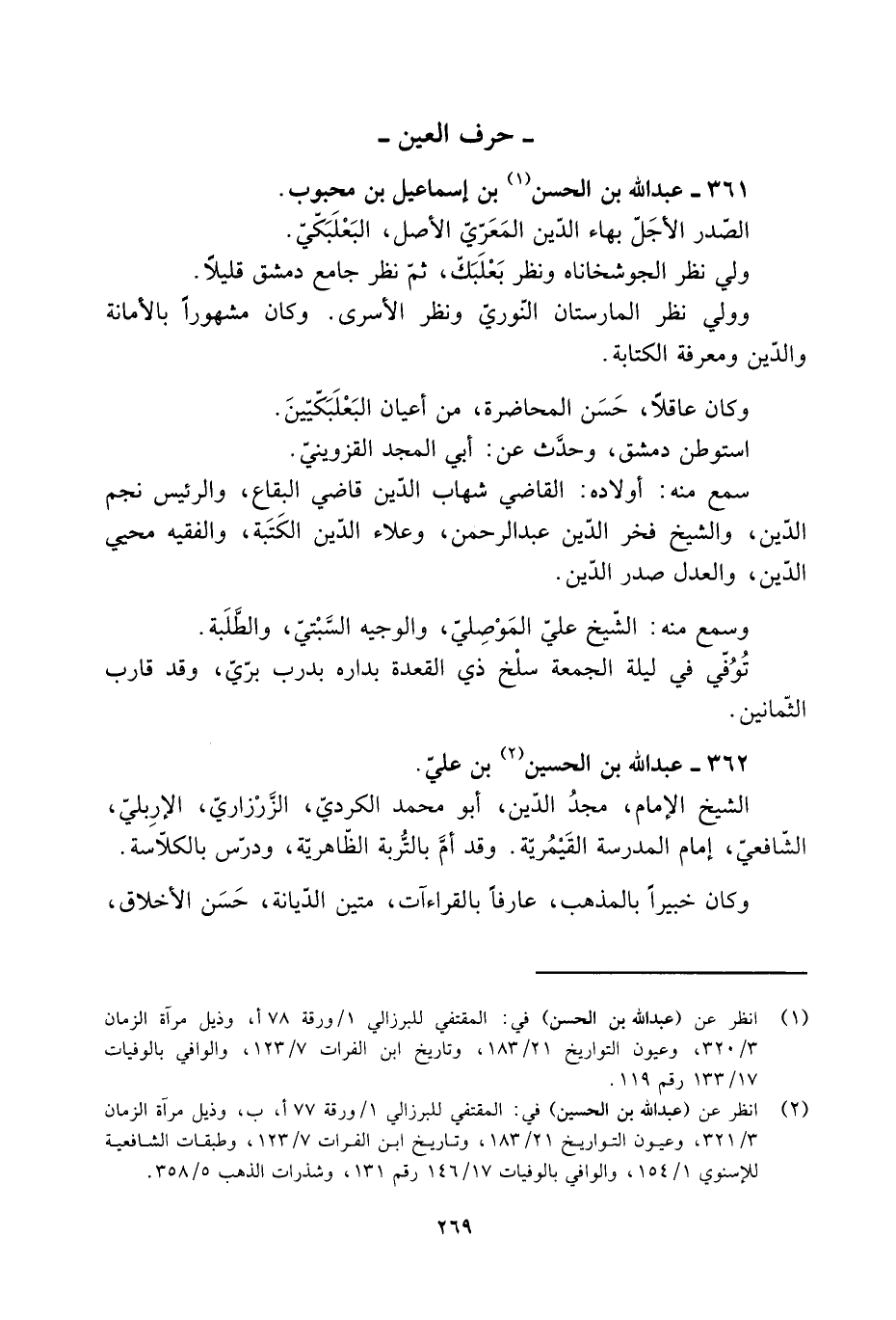 [2] انظر عن (عبد الله بن الحسين) في: المقتفي للبرزالي 1/ ورقة 77 أ، ب، وذيل مرآة الزمان 3/ 321، وعيون التواريخ 21/ 183، وتاريخ ابن الفرات 7/ 123، وطبقات الشافعية للإسنويّ 1/ 154، والوافي بالوفيات 17/ 146 رقم 131، وشذرات الذهب 5/ 358.