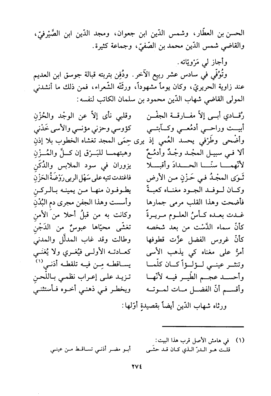 ورثاه شهاب الدّين أيضا بقصيدة أوّلها: