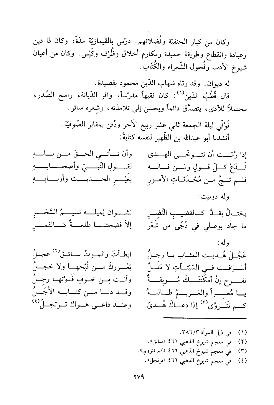 [3] في معجم شيوخ الذهبي 466 «كم تنزوي» .