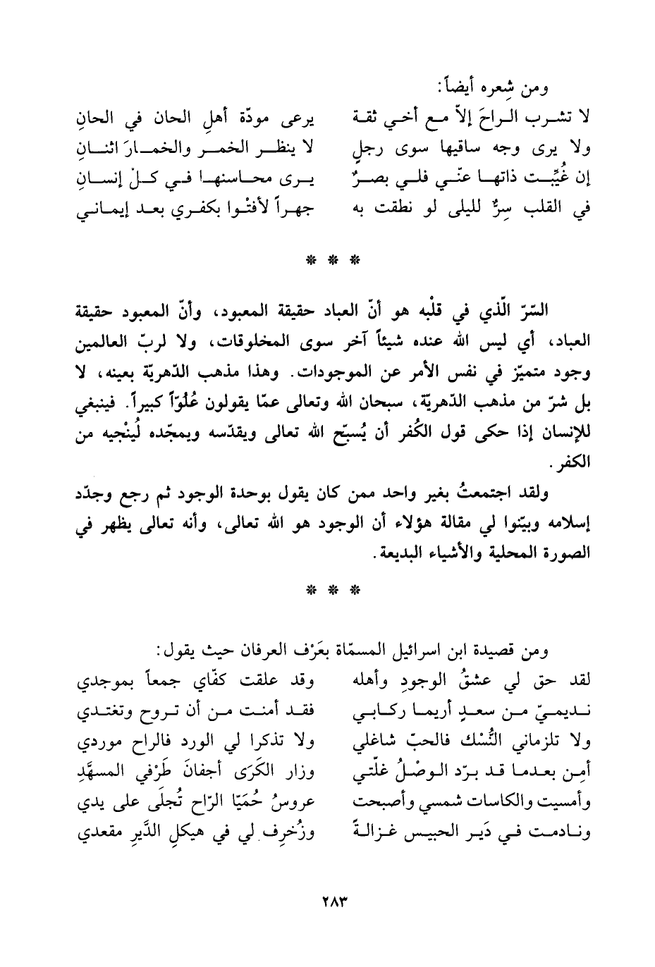 ولقد اجتمعتُ بغير واحد مِمَّنْ كان يقول بوحدة الوجود ثُمَّ رجع وجدّد إسلامه وبيّنوا لي مقالة هَؤُلَاء أن الوجود هُوَ الله تعالى، وأنه تعالى يظهر فِي الصورة المحلية والأشياء البديعة.