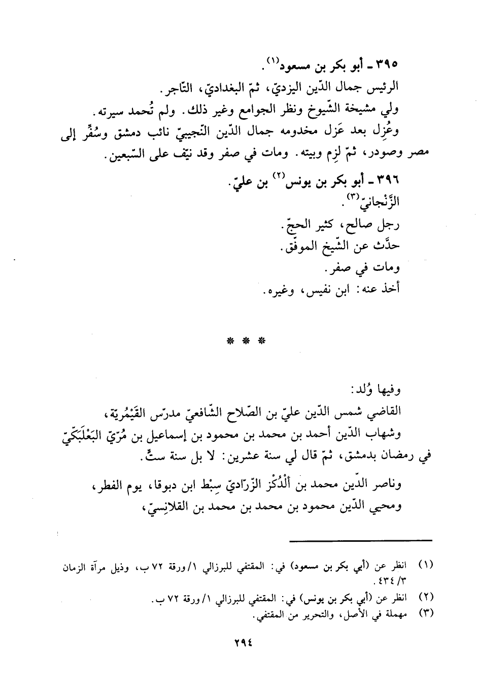 [2] انظر عن (أبي بكر بن يونس) في: المقتفي للبرزالي 1/ ورقة 72 ب.