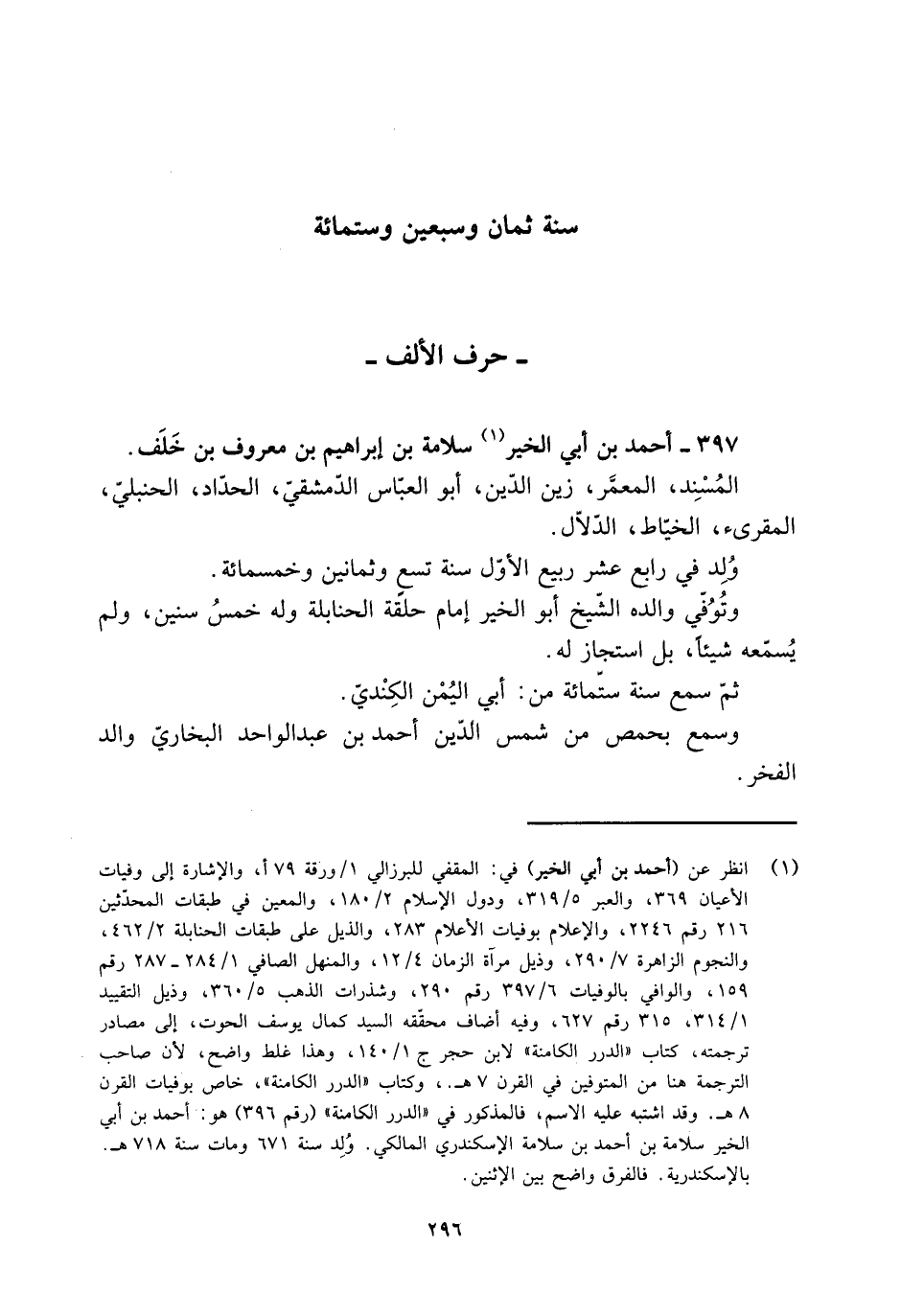 397- أَحْمَد بْن أبي الخير [1] سلامة بْن إِبْرَاهِيم بْن معروف بْن خَلَف.