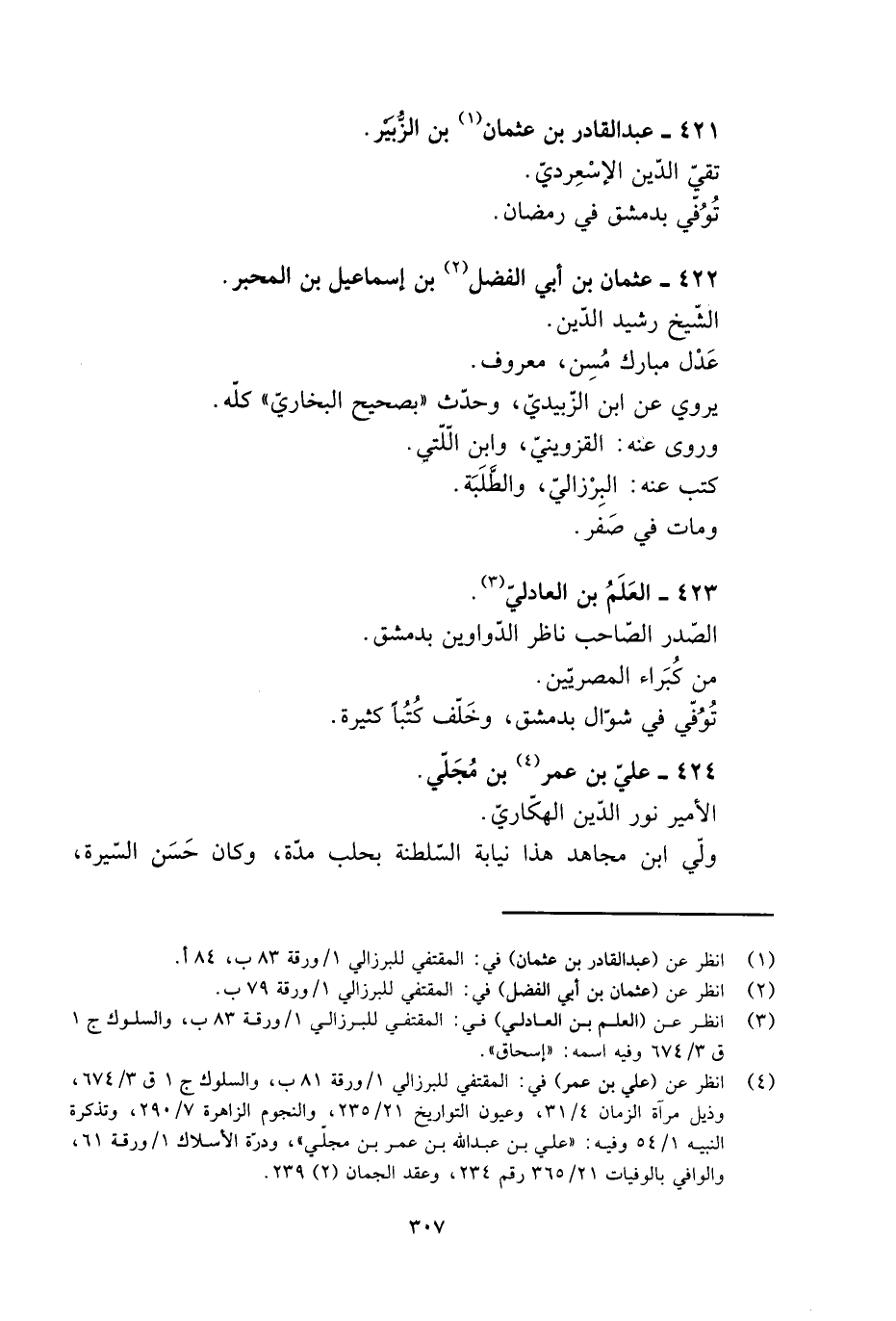421- عَبْد القادر بْن عُثْمَان [1] بْن الزُّبَيْر.