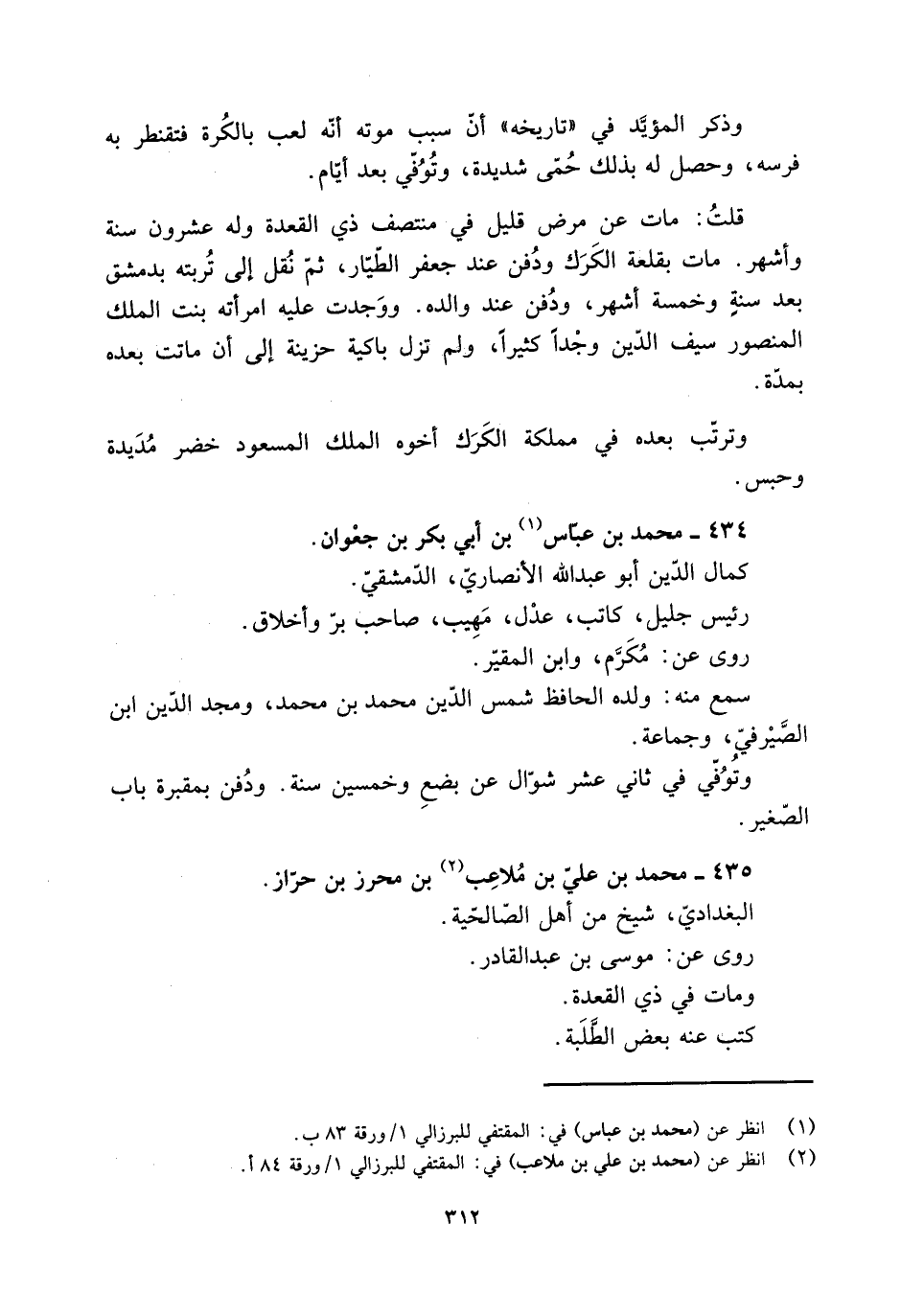 [2] انظر عن (محمد بن علي بن ملاعب) في: المقتفي للبرزالي 1/ ورقة 84 أ.