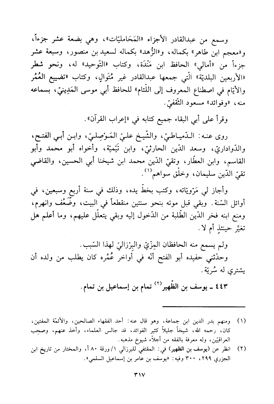 443- يوسف بْن الظّهير [2] تمام بن إسماعيل بن تمام.