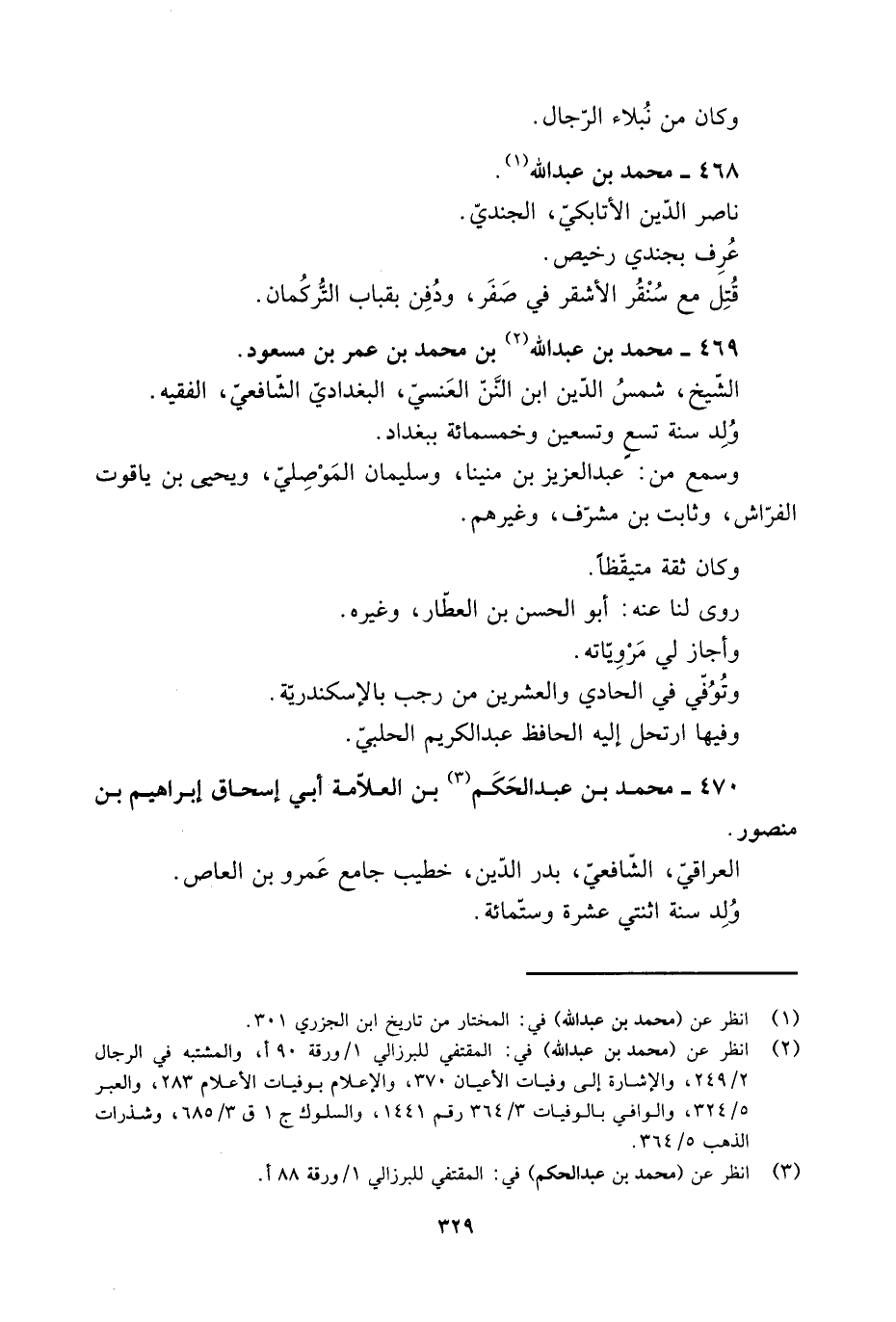 [3] انظر عن (محمد بن عبد الحكم) في: المقتفي للبرزالي 1/ ورقة 88 أ.