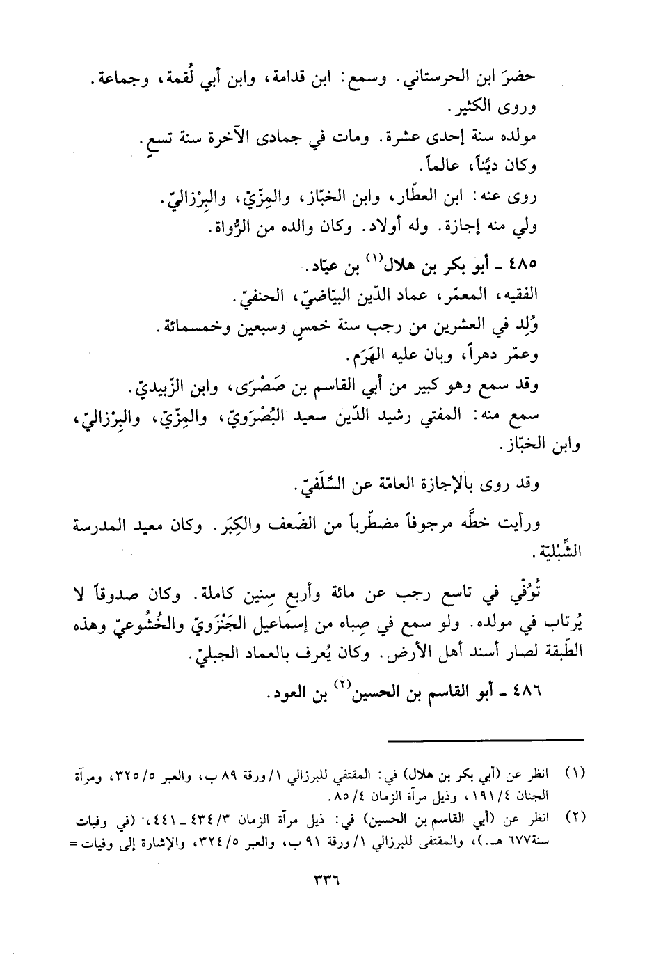 [1] انظر عن (أبي بكر بن هلال) في: المقتفي للبرزالي 1/ ورقة 89 ب، والعبر 5/ 325، ومرآة الجنان 4/ 191، وذيل مرآة الزمان 4/ 85.