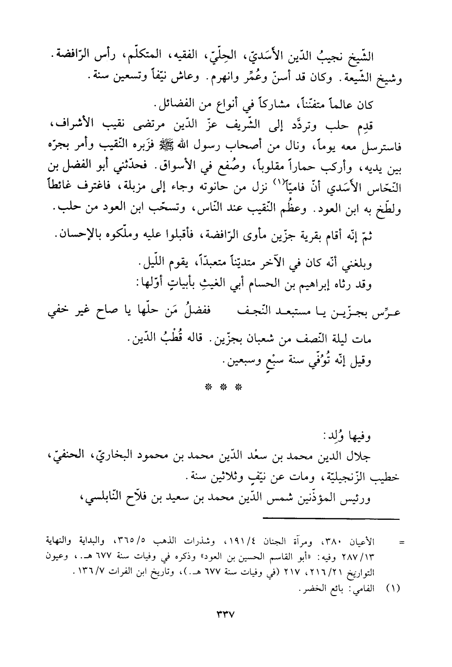 الشَّيْخ نجيبُ الدّين الأسديّ، الحِلّيّ، الفقيه، المتكلّم، رأس الرّافضة.