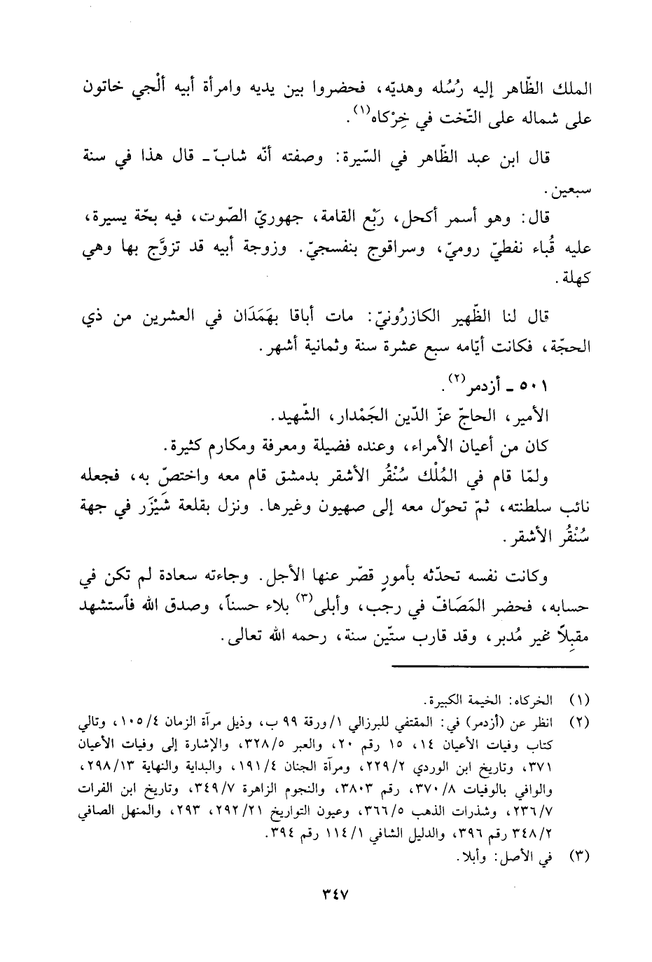 [2] انظر عن (أزدمر) في: المقتفي للبرزالي 1/ ورقة 99 ب، وذيل مرآة الزمان 4/ 105، وتالي كتاب وفيات الأعيان 14، 15 رقم 20، والعبر 5/ 328، والإشارة إلى وفيات الأعيان 371، وتاريخ ابن الوردي 2/ 229، ومرآة الجنان 4/ 191، والبداية والنهاية 13/ 298، والوافي بالوفيات 8/ 370، رقم 3803، والنجوم الزاهرة 7/ 349، وتاريخ ابن الفرات 7/ 236، وشذرات الذهب 5/ 366، وعيون التواريخ 21/ 292، 293، والمنهل الصافي 2/ 348 رقم 396، والدليل الشافي 1/ 114 رقم 394.