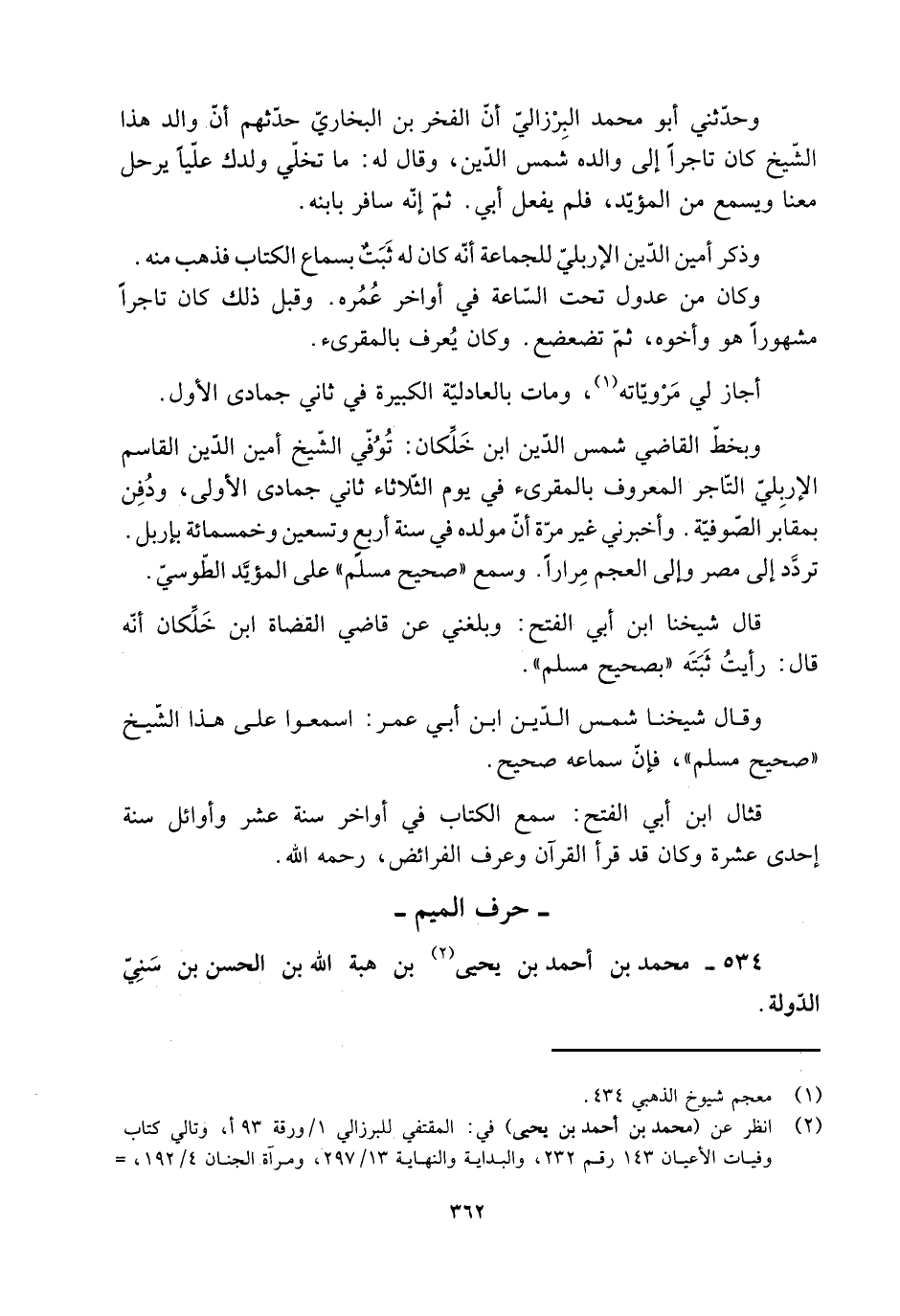 [2] انظر عن (محمد بن أحمد بن يحيى) في: المقتفي للبرزالي 1/ ورقة 93 أ، وتالي كتاب وفيات الأعيان 143 رقم 232، والبداية والنهاية 13/ 297، ومرآة الجنان 4/ 192،