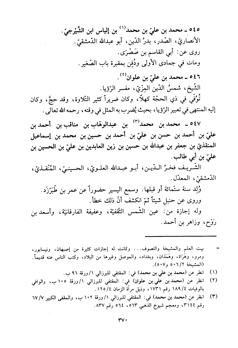[3] انظر عن (محمد بن محمد) في: المقتفي للبرزالي 1/ ورقة 102 ب، والمقفى الكبير 7/ 67 رقم 3144، ومعجم شيوخ الذهبي 563، 564 رقم 837.
