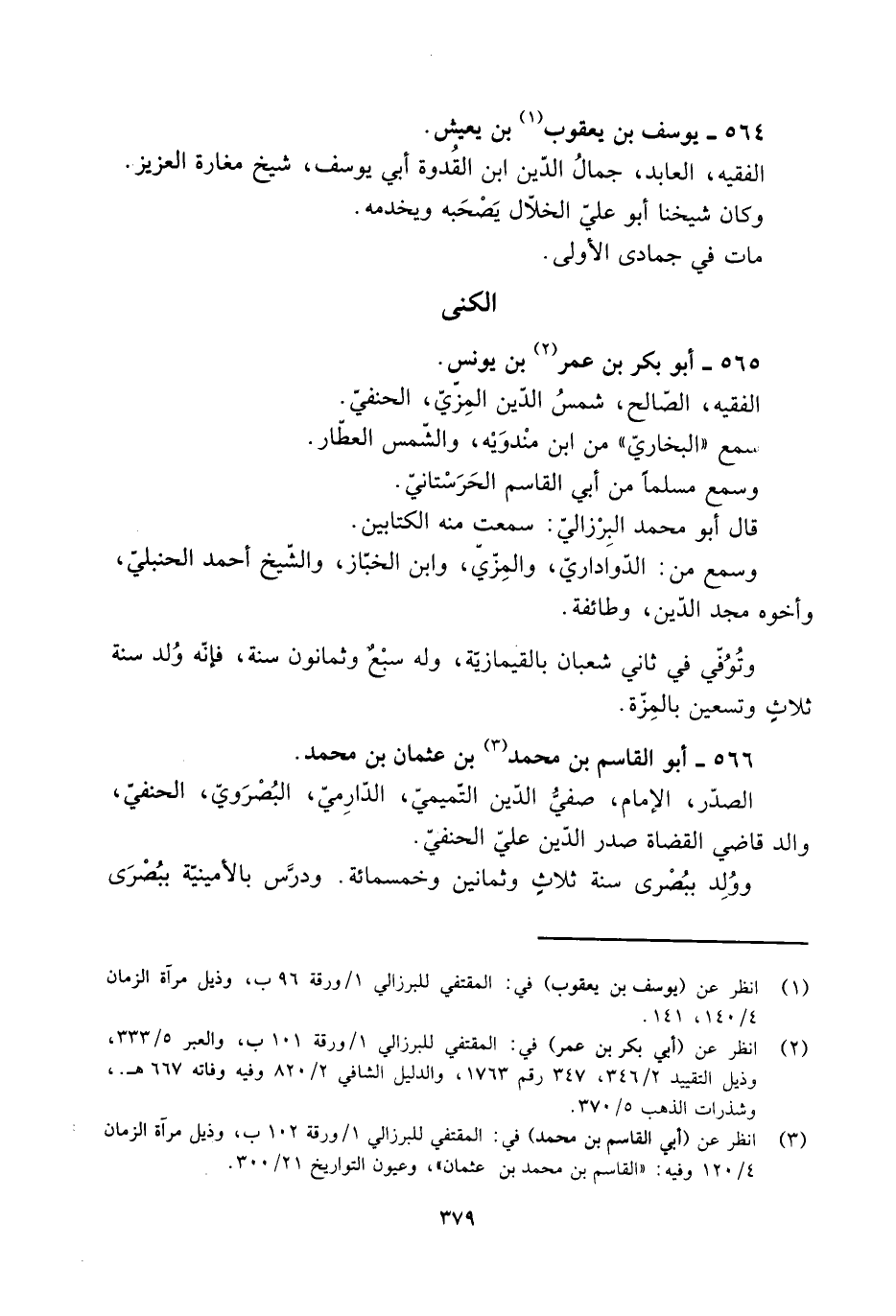 [3] انظر عن (أبي القاسم بن محمد) في: المقتفي للبرزالي 1/ ورقة 102 ب، وذيل مرآة الزمان 4/ 120 وفيه: «القاسم بن محمد بن عثمان» ، وعيون التواريخ 21/ 300.