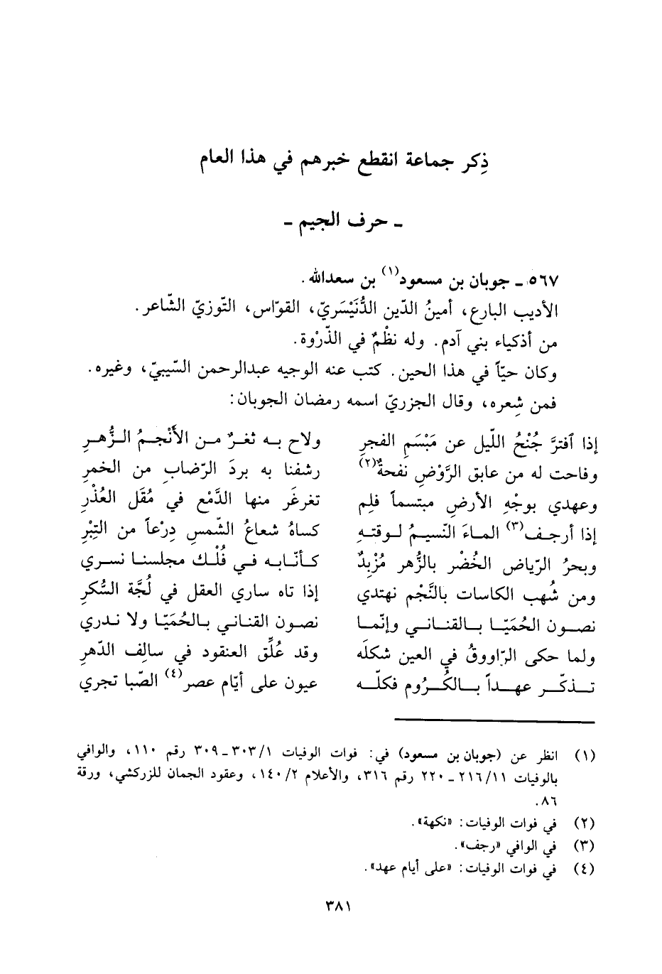[1] انظر عن (جوبان بن مسعود) في: فوات الوفيات 1/ 303- 309 رقم 110، والوافي بالوفيات 11/ 216- 220 رقم 316، والأعلام 2/ 140، وعقود الجمان للزركشي، ورقة 86.