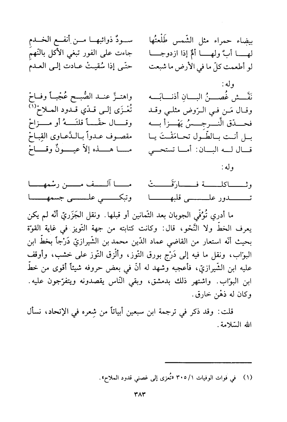 [1] في فوات الوفيات 1/ 305 «تعزى إلى غصني قدود الملاح» .