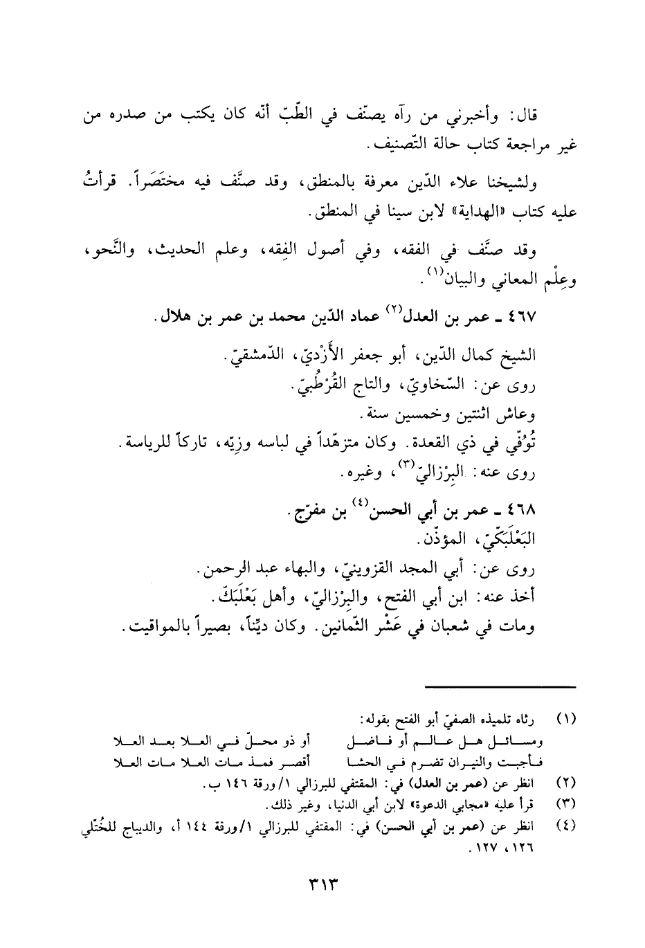 [4] انظر عن (عمر بن أبي الحسن) في: المقتفي للبرزالي 1/ ورقة 144 أ، والديباج للختّلي 126، 127.