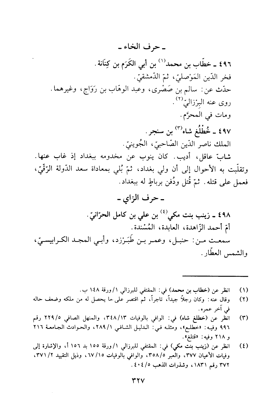 [1] انظر عن (خطاب بن محمد) في: المقتفي للبرزالي 1/ ورقة 148 ب.