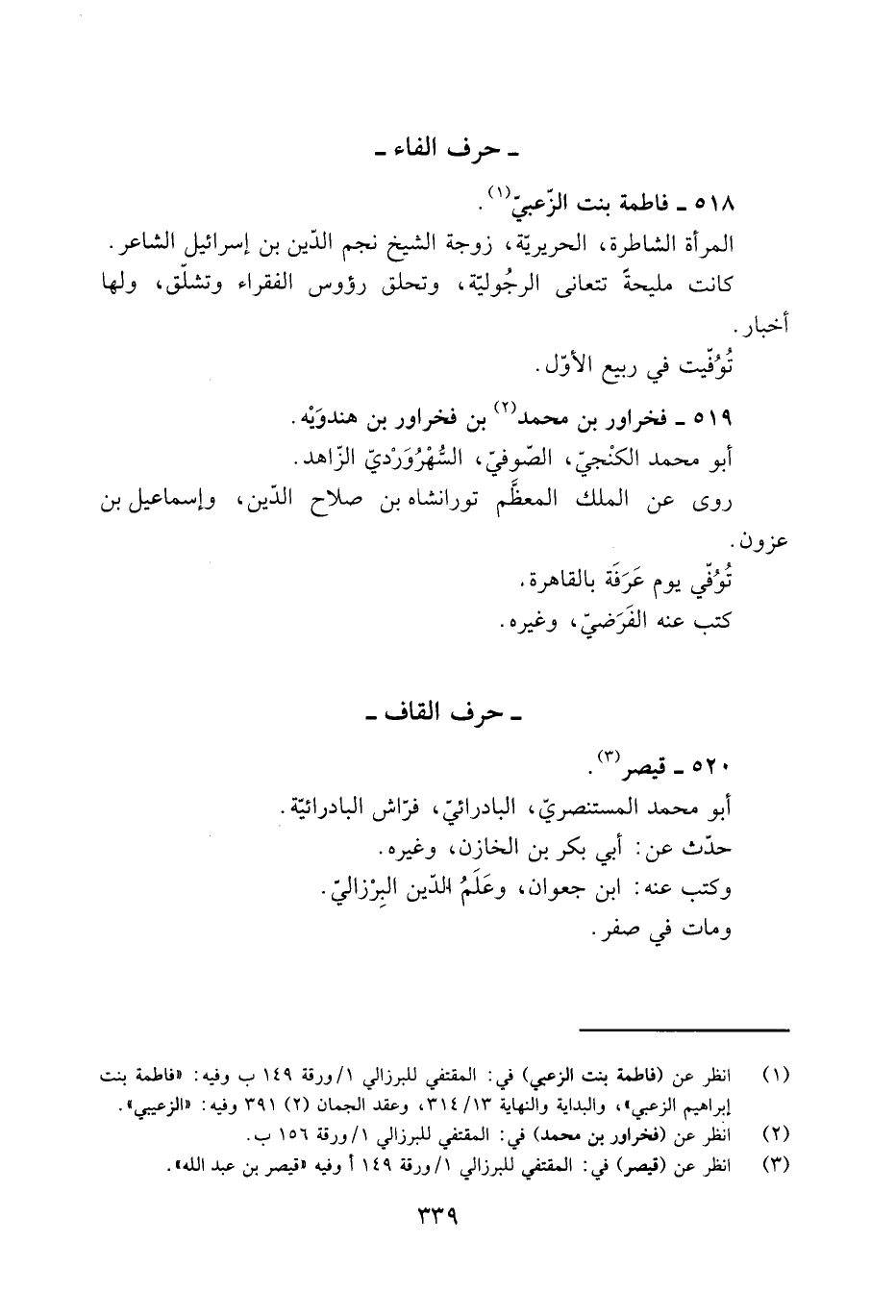 [1] انظر عن (فاطمة بنت الزعبي) في: المقتفي للبرزالي 1/ ورقة 149 ب وفيه: «فاطمة بنت إبراهيم الزعبي» ، والبداية والنهاية 13/ 314، وعقد الجمان (2) 391 وفيه: «الزعيبي» .