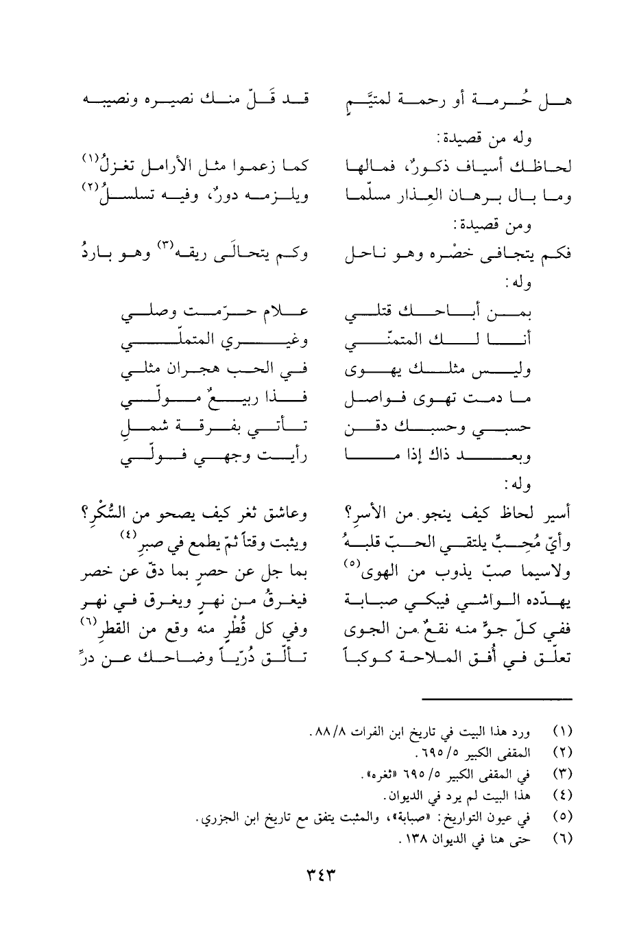 هَلْ حُرمة أو رحمة لمتيَّمٍ ... قد قَلّ منك نصيره ونصيبه
