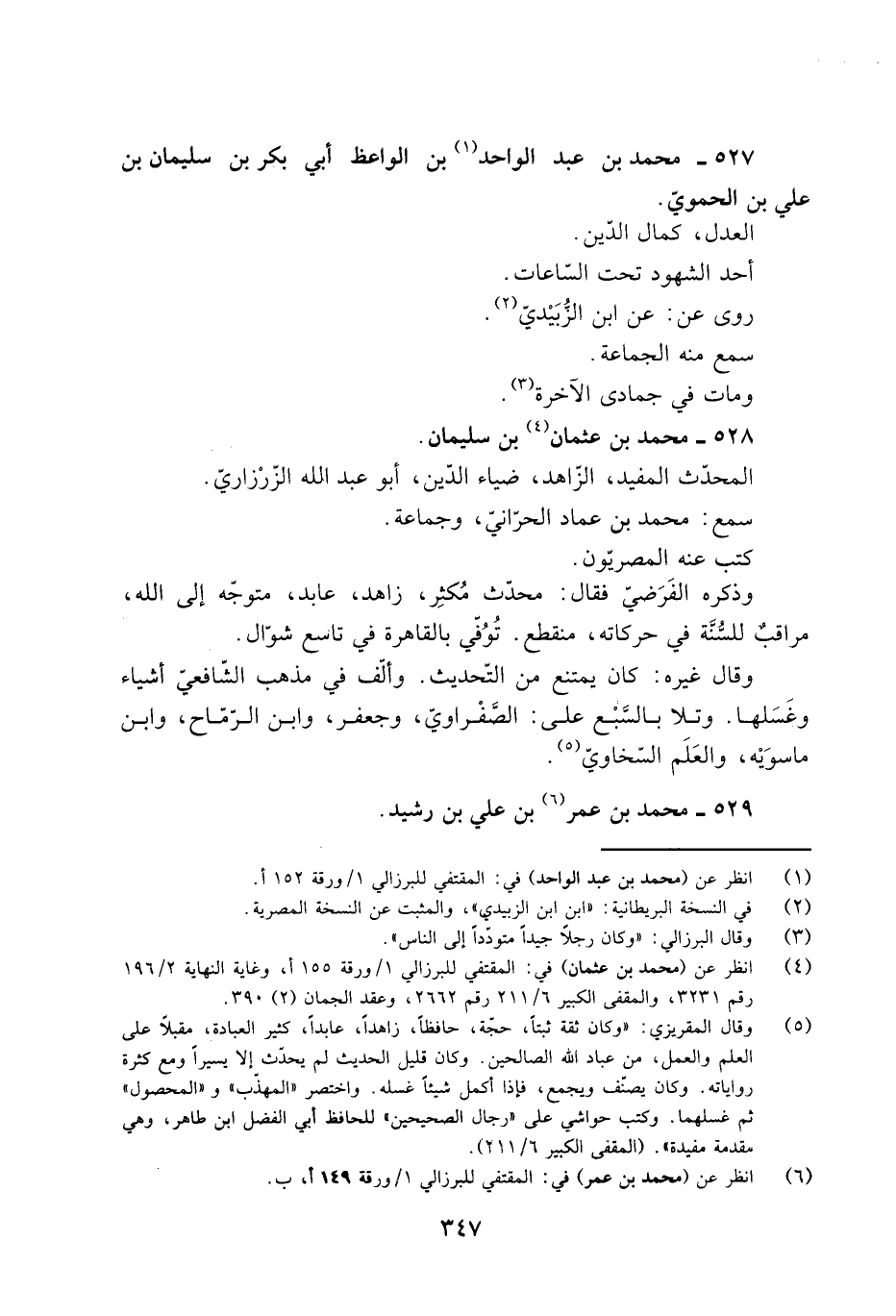 527- مُحَمَّد بْن عَبْد الواحد [1] بْن الواعظ أَبِي بَكْر بْن سُلَيْمَان بْن عَلِيّ بْن الحمويّ.