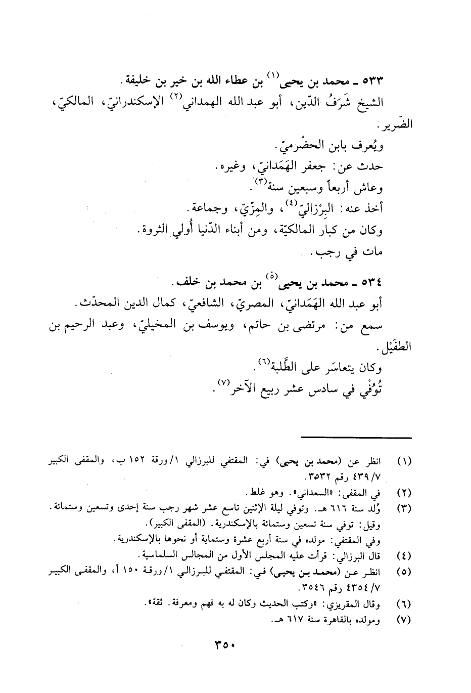[5] انظر عن (محمد بن يحيى) في: المقتفي للبرزالي 1/ ورقة 150 أ، والمقفى الكبير 7/ 4354 رقم 3546.