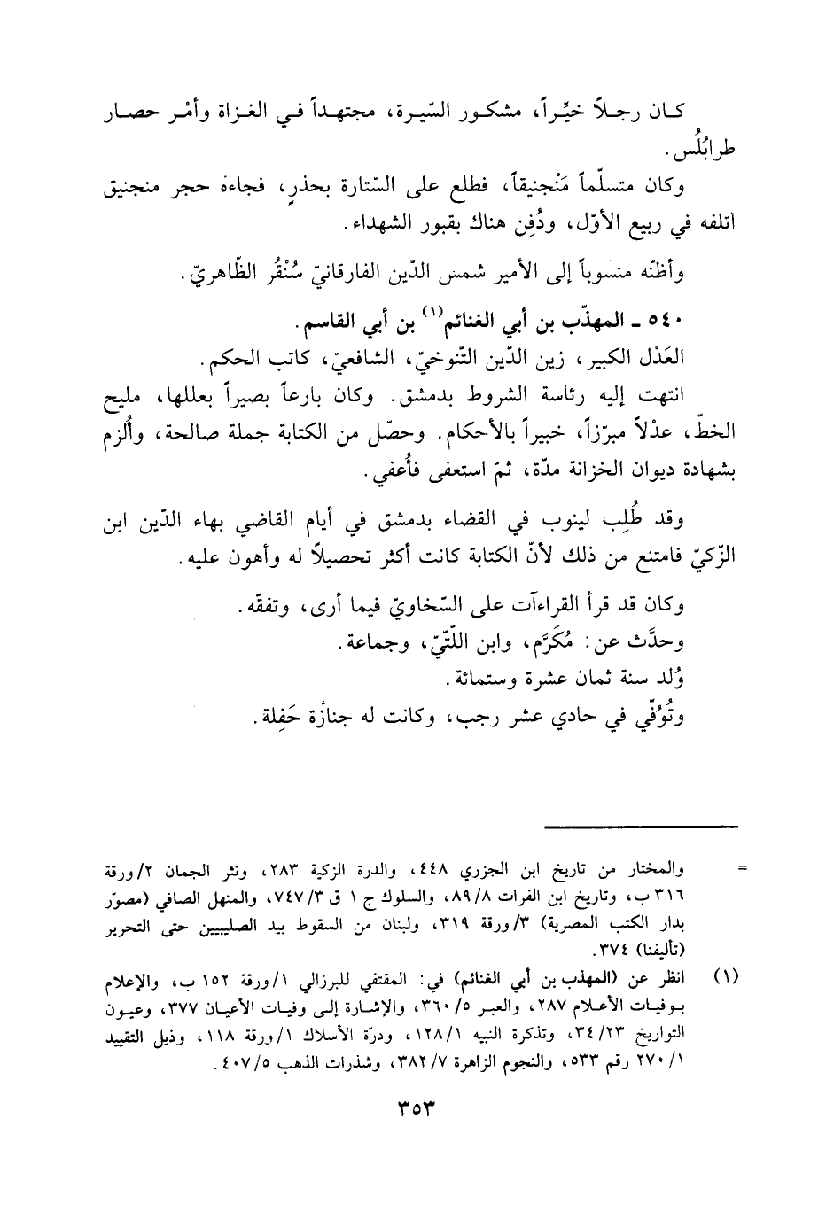 [1] انظر عن (المهذب بن أبي الغنائم) في: المقتفي للبرزالي 1/ ورقة 152 ب، والإعلام بوفيات الأعلام 287، والعبر 5/ 360، والإشارة إلى وفيات الأعيان 377، وعيون التواريخ 23/ 34، وتذكرة النبيه 1/ 128، ودرّة الأسلاك 1/ ورقة 118، وذيل التقييد 1/ 270 رقم 533، والنجوم الزاهرة 7/ 382، وشذرات الذهب 5/ 407.