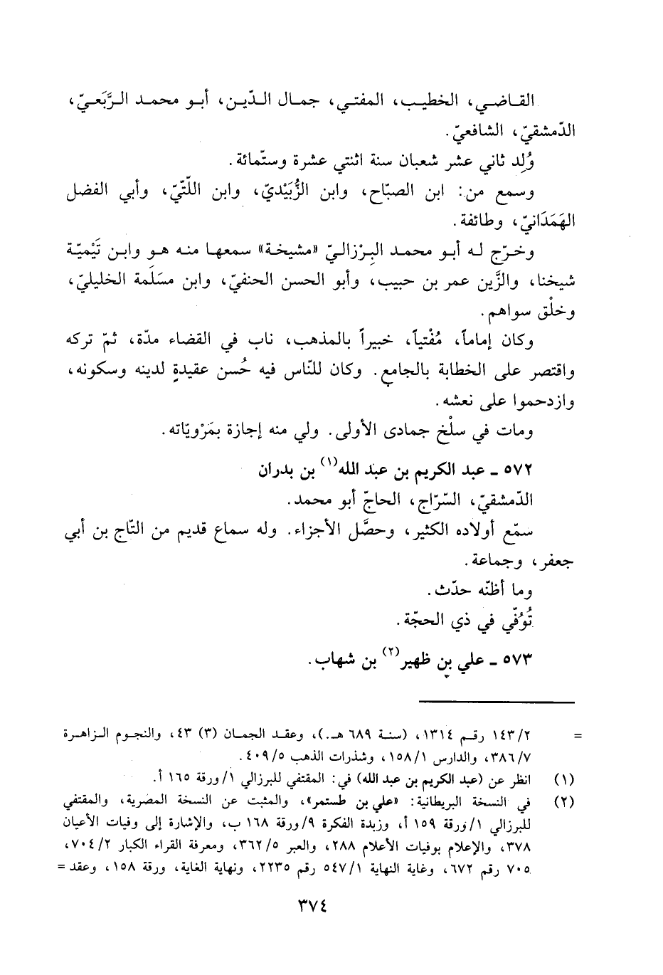 [ (- 2] / 143 رقم 1314، (سنة 689 هـ.) ، وعقد الجمان (3) 43، والنجوم الزاهرة 7/ 386، والدارس 1/ 158، وشذرات الذهب 5/ 409.